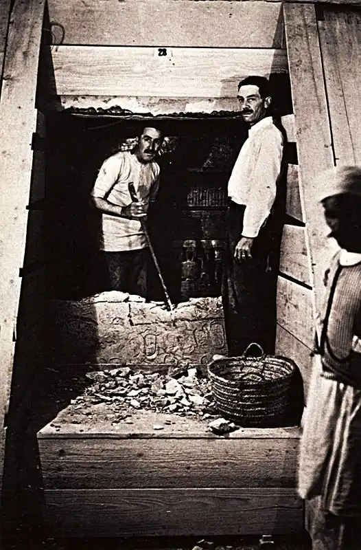3-го ноября 1922 года рабочие стали сносить стены бараков, оставленные Картером в 1917-м. Снося стены, они убирали и метровый слой щебня, находившийся под ними.