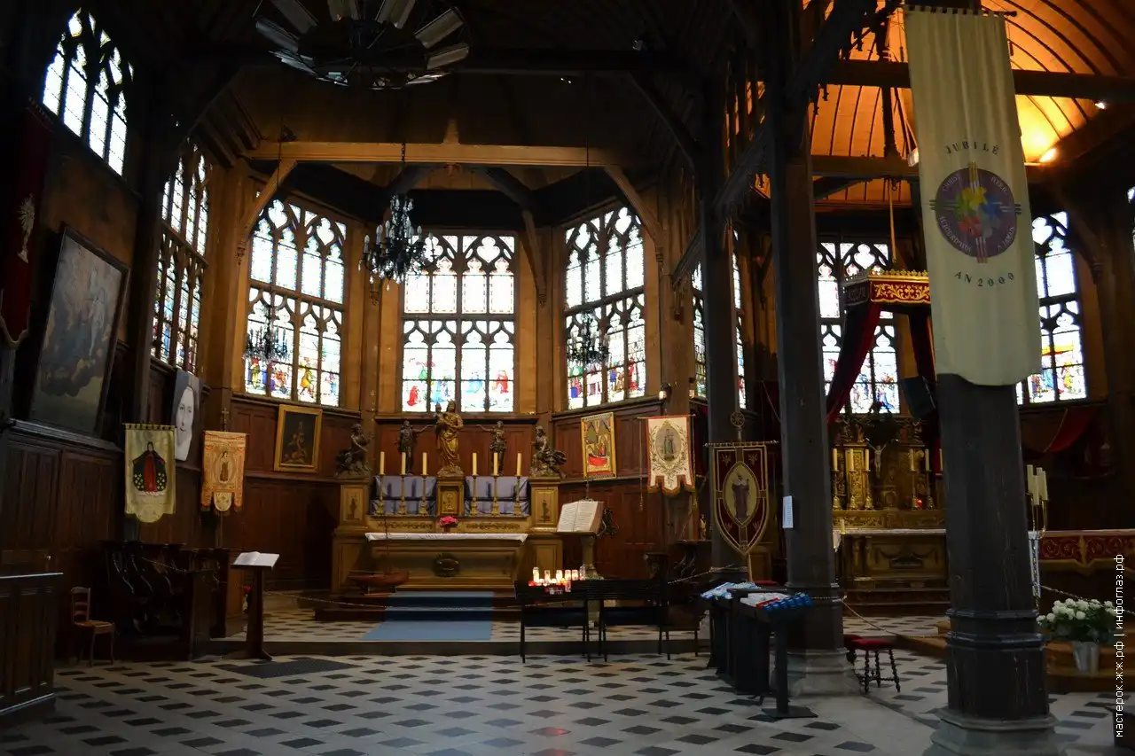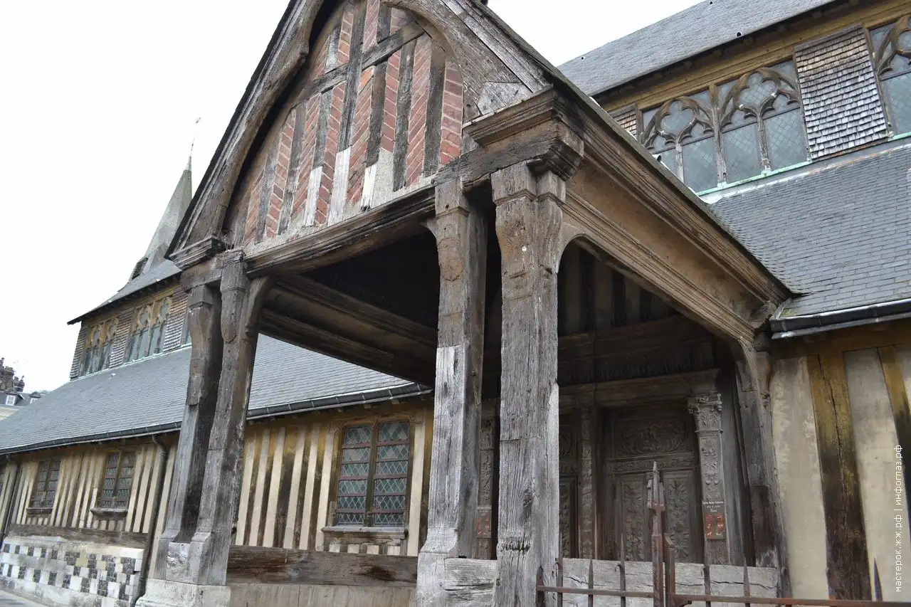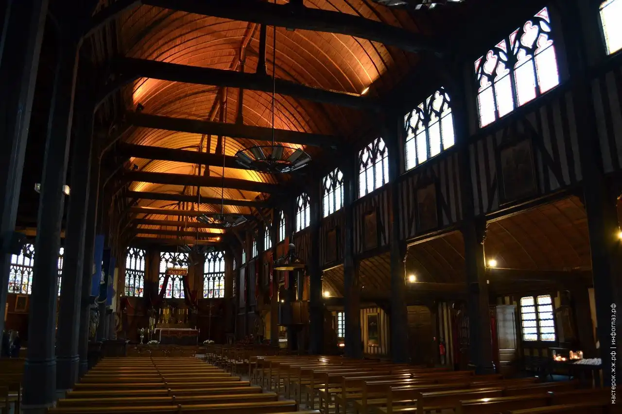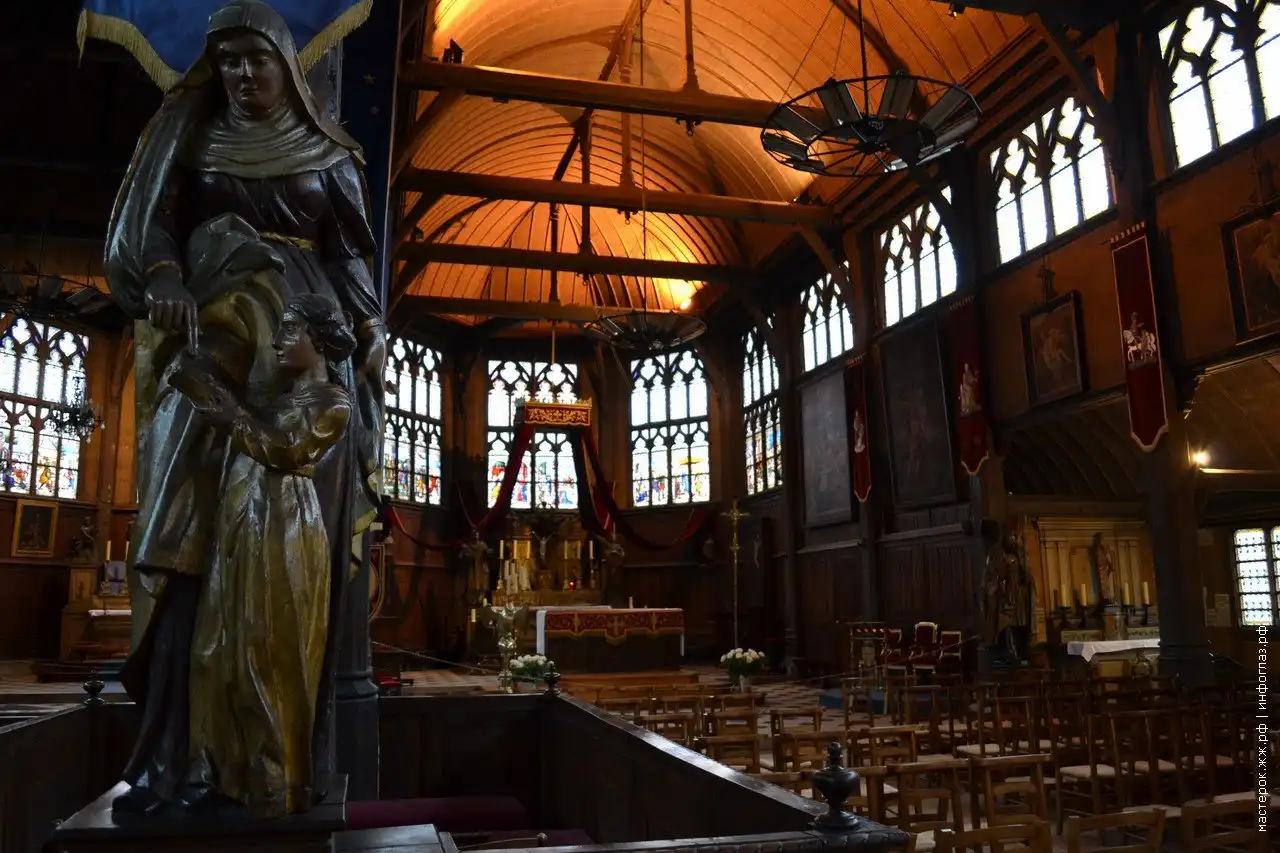 Эта церковь, которая является самым крупным деревянным храмом во Франции, была построена в XV веке, после окончания Столетней войны, когда англичане ушли из города. Освятили ее в честь святой Екатерины Александрийской. Она заменила каменный храм, разрушенный во время военных действий. Церковь строили местные корабелы, а дерево брали из окрестных лесов: стройка из камня пострадавшим от войны горожанам была не по карману. Так как храм создавали судостроители, то изнутри он напоминает перевернутый старинный корабль викинговских времен. Из камня сооружен лишь фундамент.