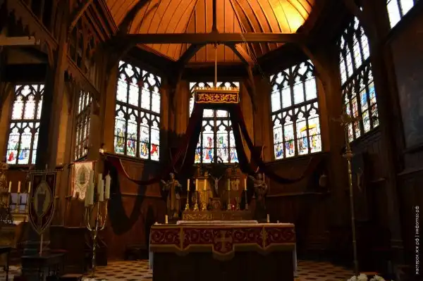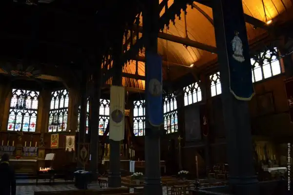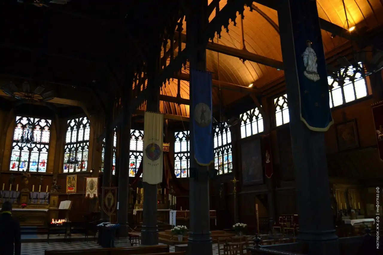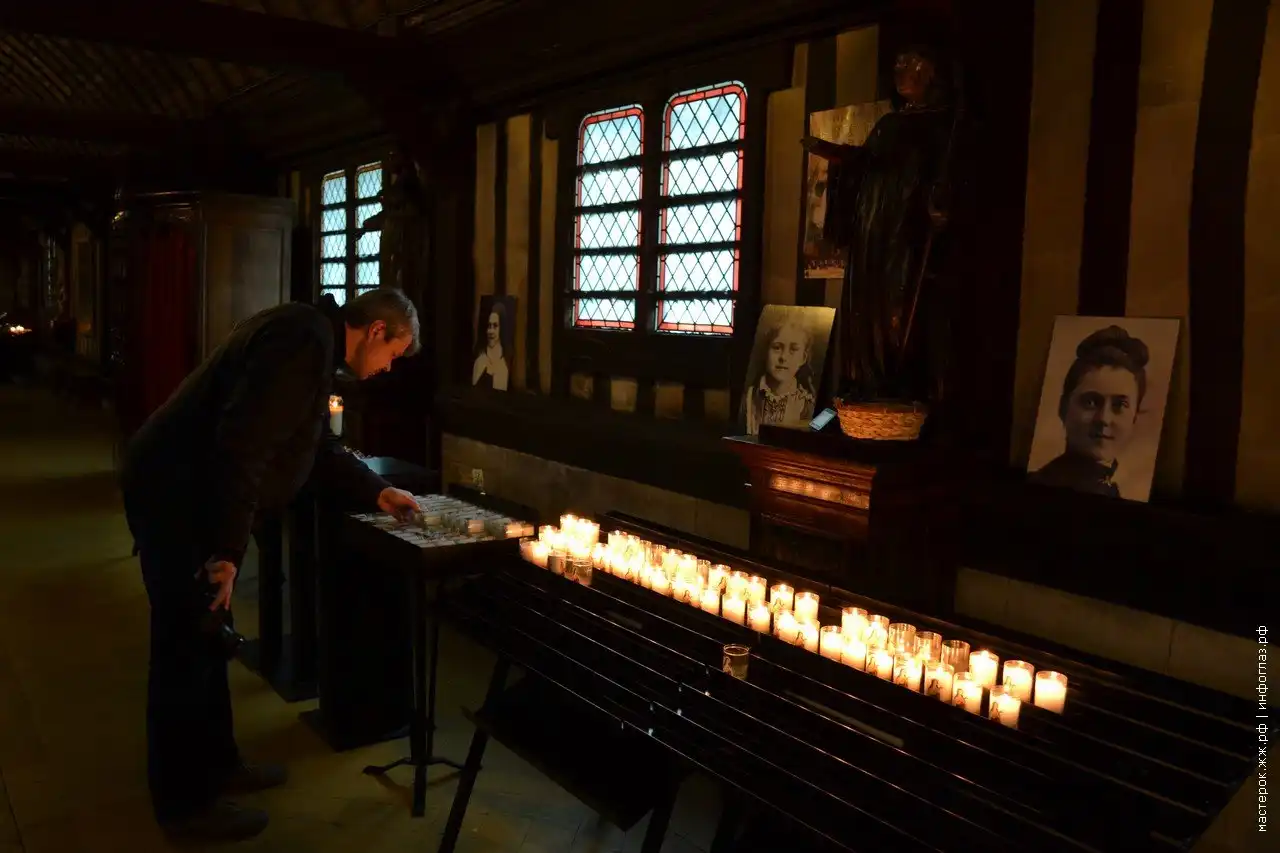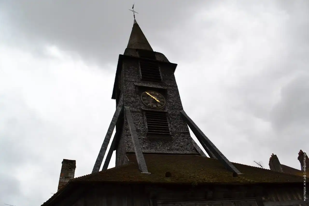 Эта церковь, которая является самым крупным деревянным храмом во Франции, была построена в XV веке, после окончания Столетней войны, когда англичане ушли из города. Освятили ее в честь святой Екатерины Александрийской. Она заменила каменный храм, разрушенный во время военных действий. Церковь строили местные корабелы, а дерево брали из окрестных лесов: стройка из камня пострадавшим от войны горожанам была не по карману. Так как храм создавали судостроители, то изнутри он напоминает перевернутый старинный корабль викинговских времен. Из камня сооружен лишь фундамент.