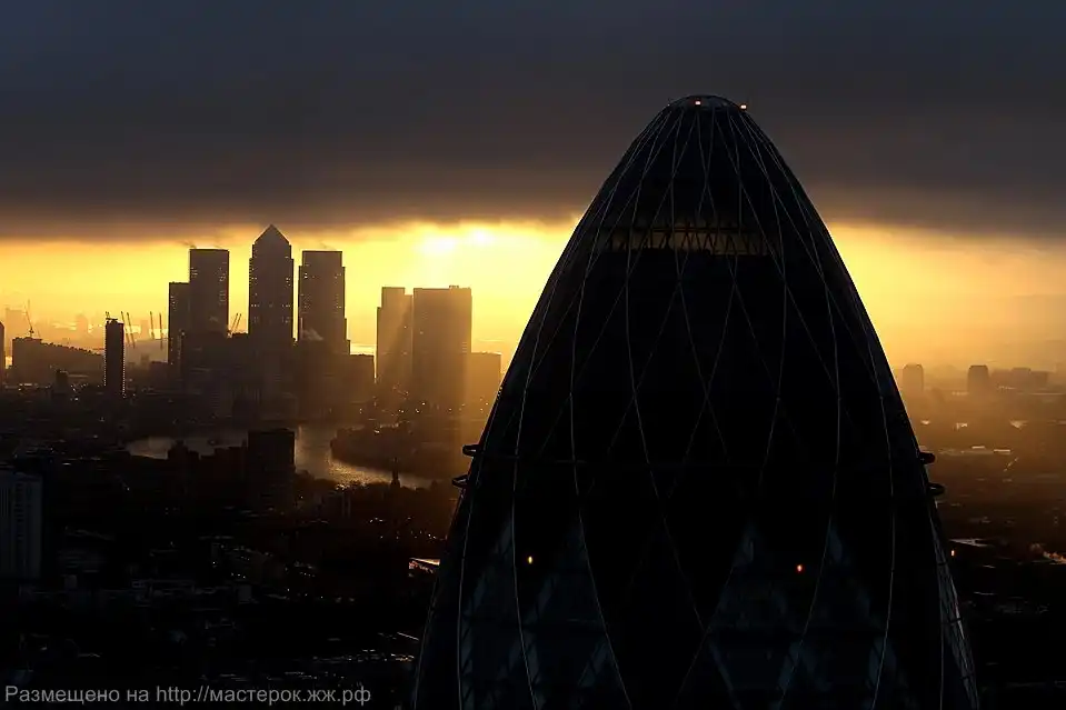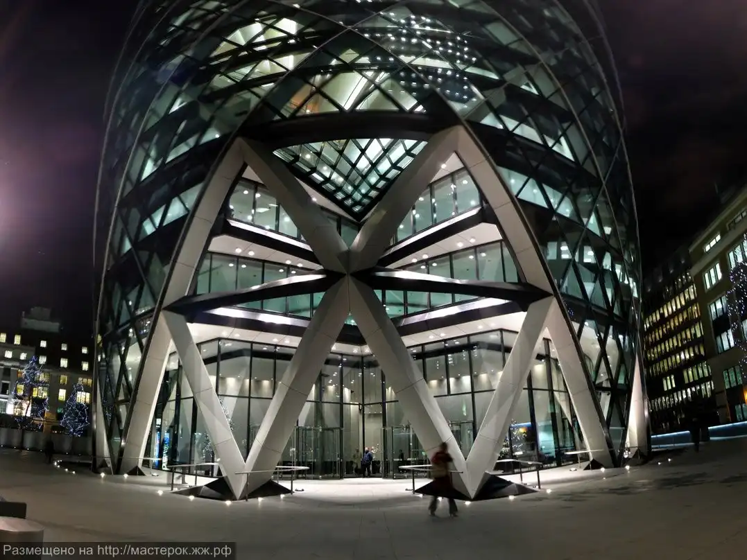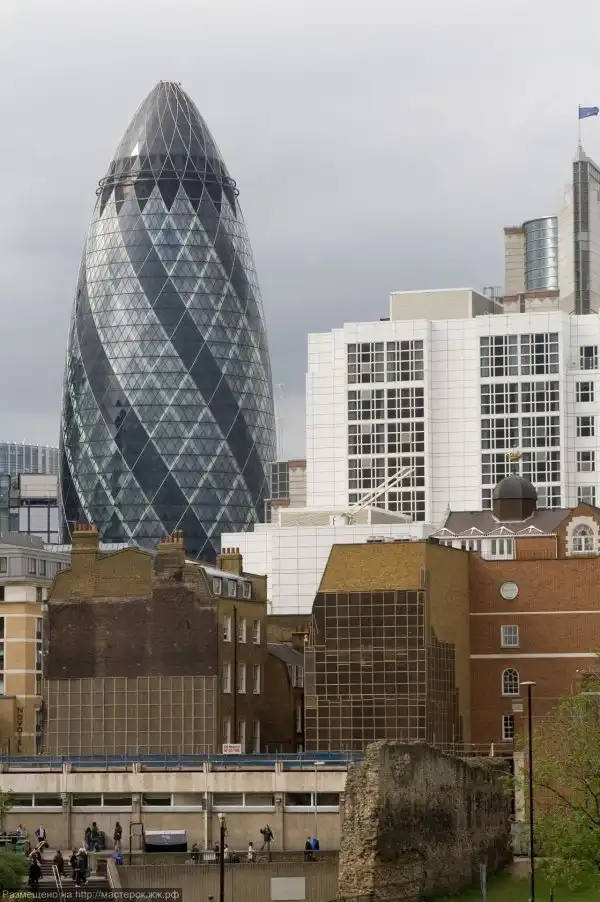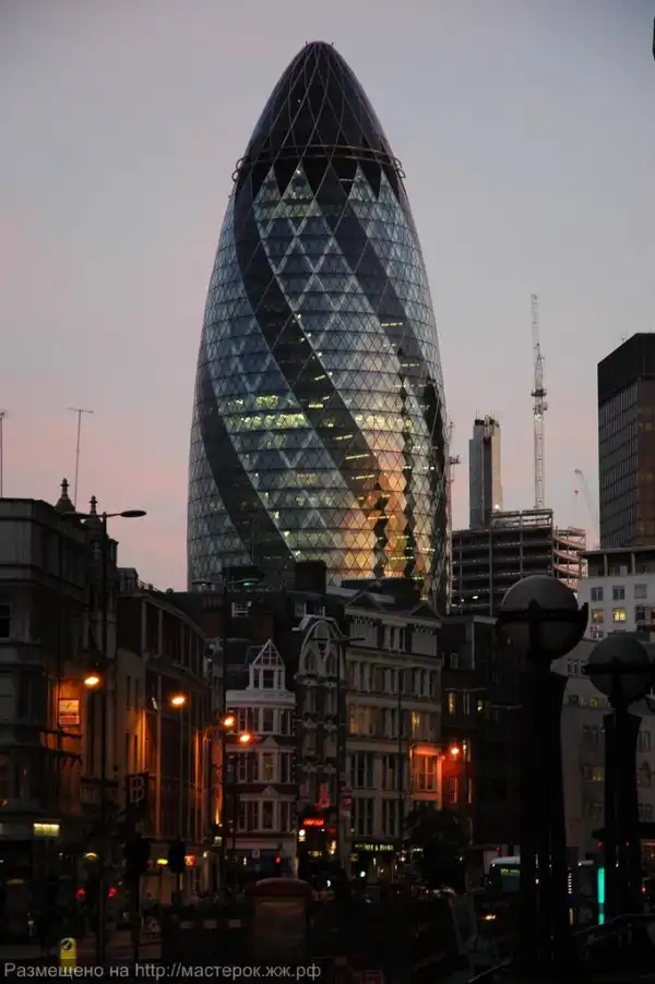 Небоскреб Мэри-Экс 30, расположенный в Сити, имеет весьма необычную сетчатую конструкцию, напоминающую Шуховскую башню в Москве.