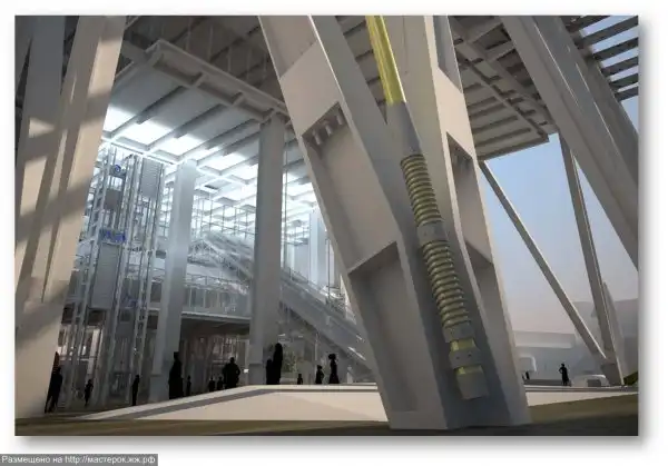К тому же, если бы небоскреб занял все место бывшей биржи, то прилегающие улицы были бы слишком узкими для такого «соседушки». А так башня имеет небольшую круглую основу, состоящую из центрального ядра и сетки из пересекающихся стальных элементов.