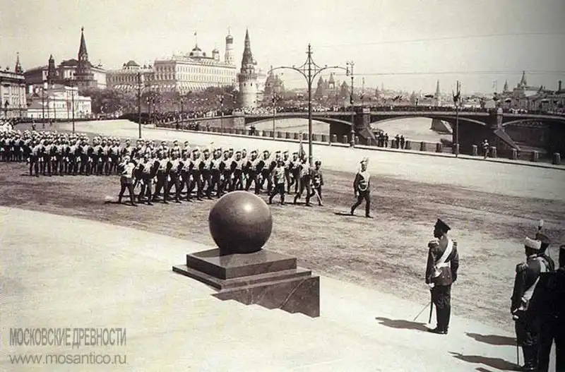 Более широкое распространение военные парады получили в конце 18-го века. В Петербурге они проводились традиционно два раза в год: зимой на Дворцовой площади, а весной на Марсовом поле. А в Первопрестольной шествия войск организовывались от случая к случаю и проходили на территории Кремля. Хотя бывали и исключения. Например, 30 мая 1912-го года, когда неподалеку от Храма Христа Спасителя проходило открытие памятника императору Александру III, торжественное шествие военных подразделений, возглавляемое лично Николаем II, состоялось возле нового монумента. Вслед за царем тогда проследовала рота дворцовых гренадеров и сводный пехотный полк, который является предшественником нынешнего Президентского полка в России. Затем, отдавая честь царю, прошли в шлемах с орлами и белых элитных кителях кавалергарды, выполняющие почетную функцию императорской охраны. Последний московский парад с участием Николая II состоялся 8 августа 1914-го, то есть спустя всего неделю после начала Первой мировой войны. В честь дня рождения государя военный смотр проходил в Кремле, но на Ивановской площади.