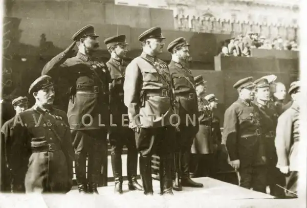Отличительной особенностью парада 7 ноября 1927-го года стало то, что его принимало гражданское лицо, председатель Центрального исполкома Михаил Калинин, хотя командованием парада занимался Председатель Реввоенсовета Ворошилов. На этом праздничном шествии не было броневиков и танков, так как обстановка в стране была накалена до предела. Находящийся на вторых ролях Сталин опасался военного переворота, так как авторитет Троцкого в войсках был еще достаточно высок. Зато в параде принял участие сводный Северо-Кавказский кавалерийский полк, который с гиканьем промчался по площади в черных бурках.