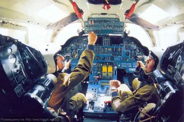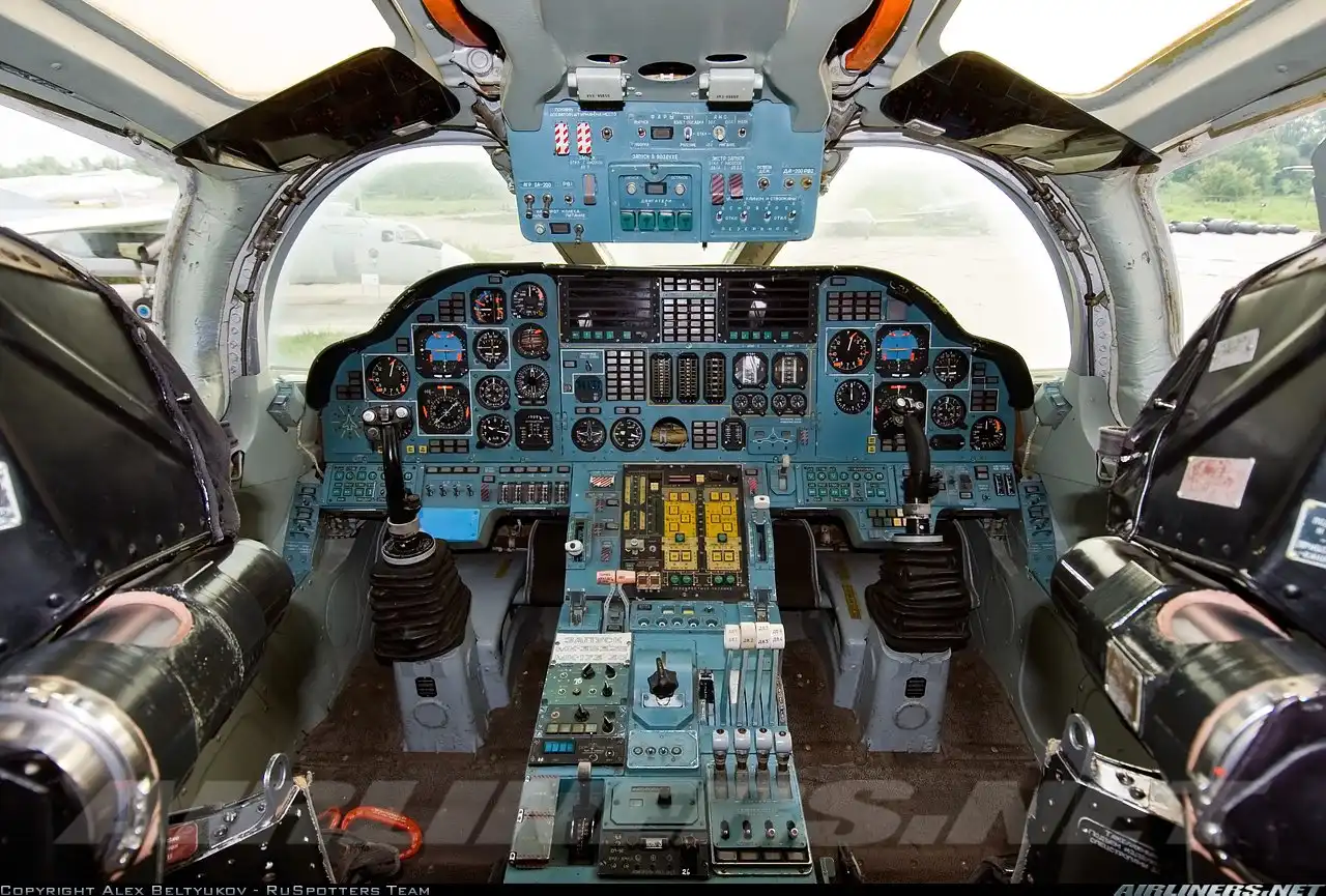 Экипаж бомбардировщика, состоящий из 4-х человек, располагается в единой просторной герметичной кабине. В передней ее части установлены кресла первого и второго пилотов, а также штурмана-оператора и штурмана. Все члены экипажа размещаются в катапультируемых креслах К-36ДМ. Для повышения работоспособности операторов и летчиков во время совершения длительного полета, спинки кресел оснащены подушками с пульсирующим воздухом для массажа. В задней части кабины пилотов располагается малогабаритная кухня, откидная койка для отдыха и туалет. Самолеты поздних моделей выпуска оснащались встроенным трапом.