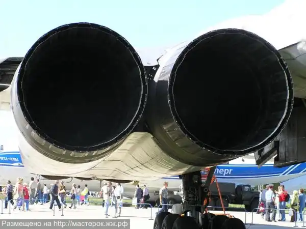 Тип двигателя – 4 ТРДДФ НК-32, бесфорсажна тяга –4х137,2 кН, на форсаже – 4х247,5 кН.