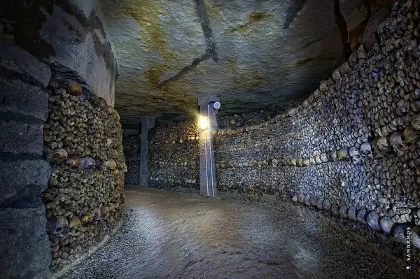 В 1809 году катакомбы обрели современный вид: коридоры, полные ровных рядов костей и черепов — чтобы как можно сильнее впечатлить посетителей. Здесь покоятся около шести миллионов парижан – почти в три раза больше нынешнего населения города. Самые поздние захоронения относятся к эпохе Французской революции, самые ранние – к эре Меровингов, им более 1200 лет. Катакомбы строились в бывших известняковых карьерах, местный камень использовали еще древние римляне, из этих камней построены Нотр-Дам и Лувр.