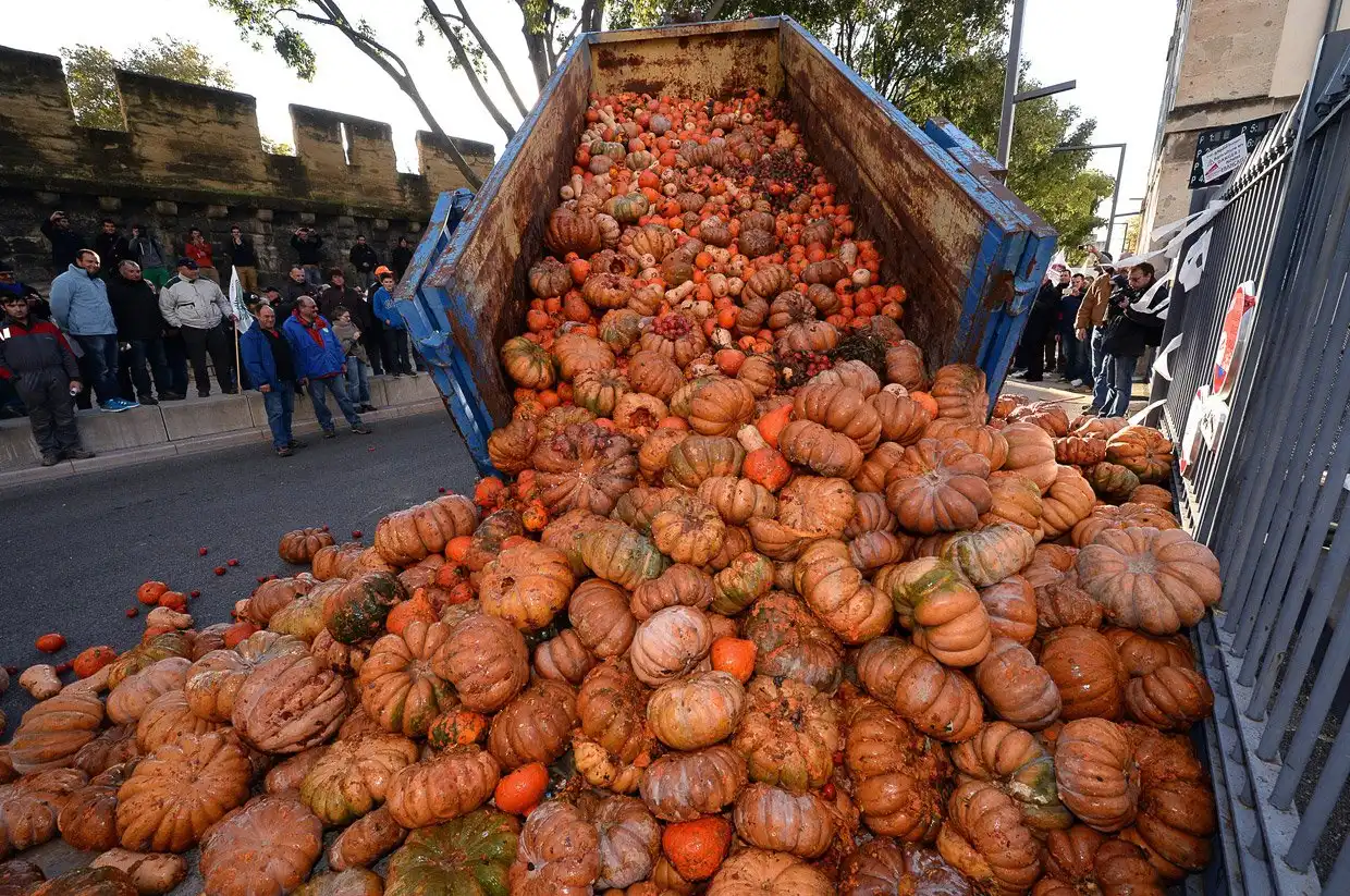 Завал из гнилых тыкв возле административного здания, Авиньон, 5 ноября 2014.