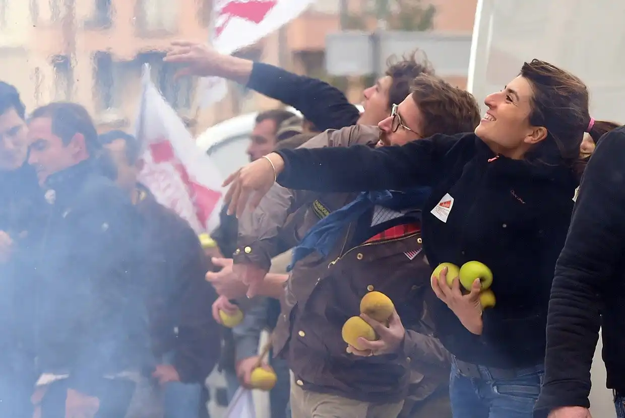 Забрасывание яблоками ОМОНа, Марсель, Франция, 5 ноября 2014.