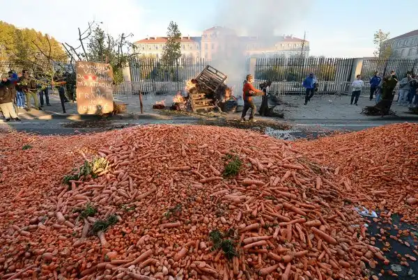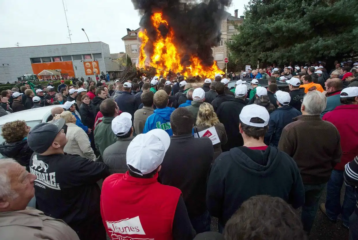 Бунт фермеров в Шалон-ан-Шампань, Франция, 5 ноября 2014. Без поджогов автомобилей — никуда.