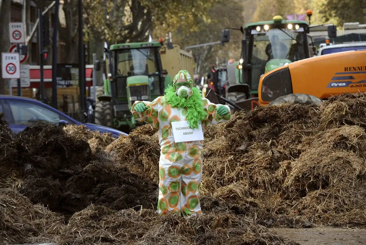 Протесты в Тулузе, 5 ноября 2014. Маска необходима — навоз все таки.