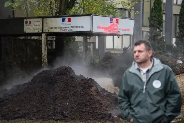 Наиболее креативный ход во время бунта фермеров во Франции — с помощью 30 тракторов они завалили навозом здание департамента сельского хозяйства, а также местной мэрии. Тулуза, 5 ноября 2014.