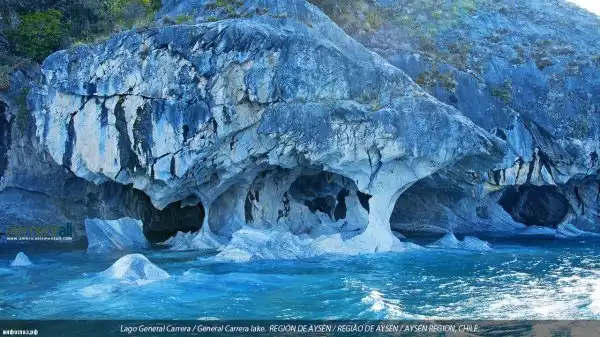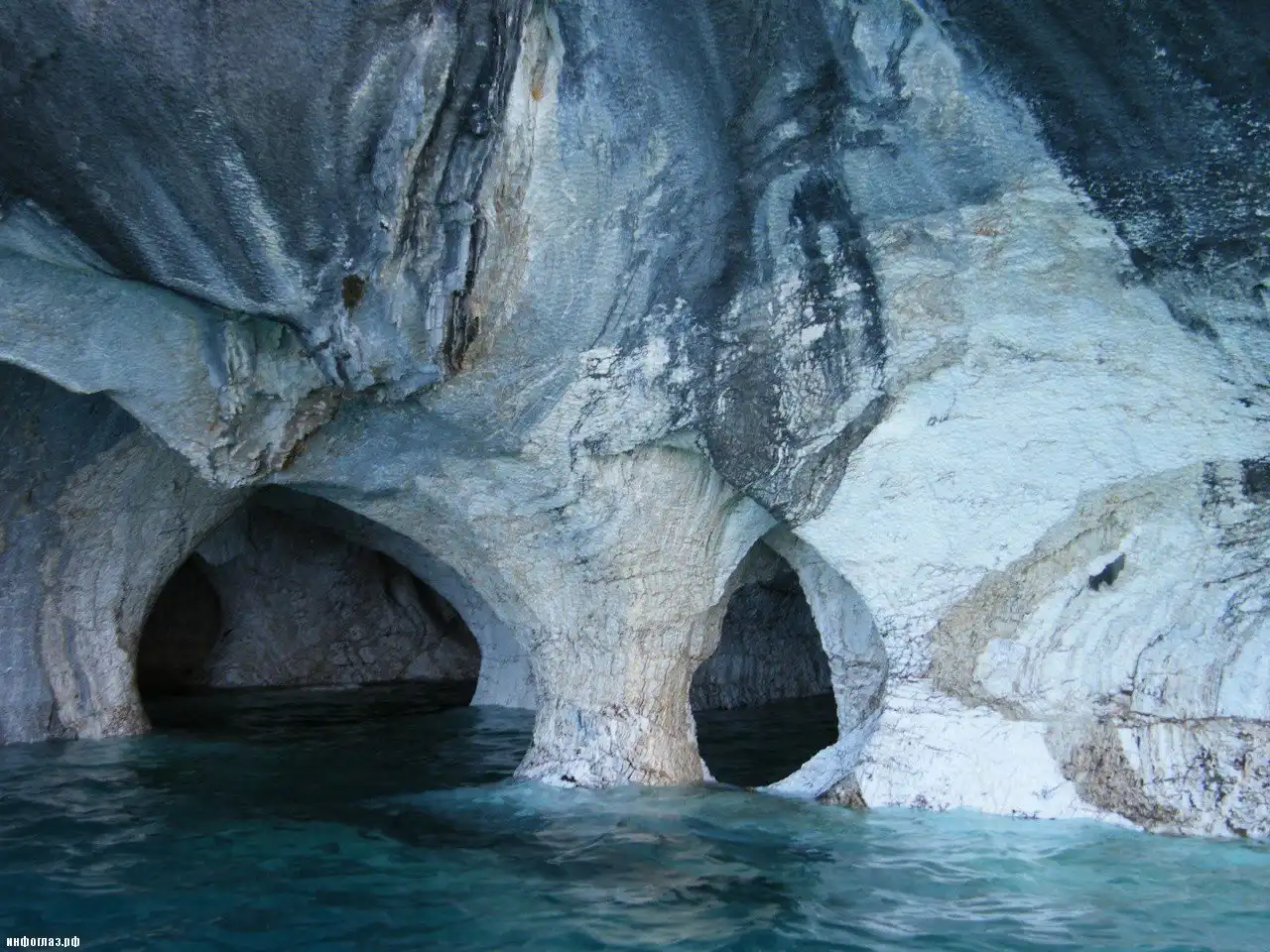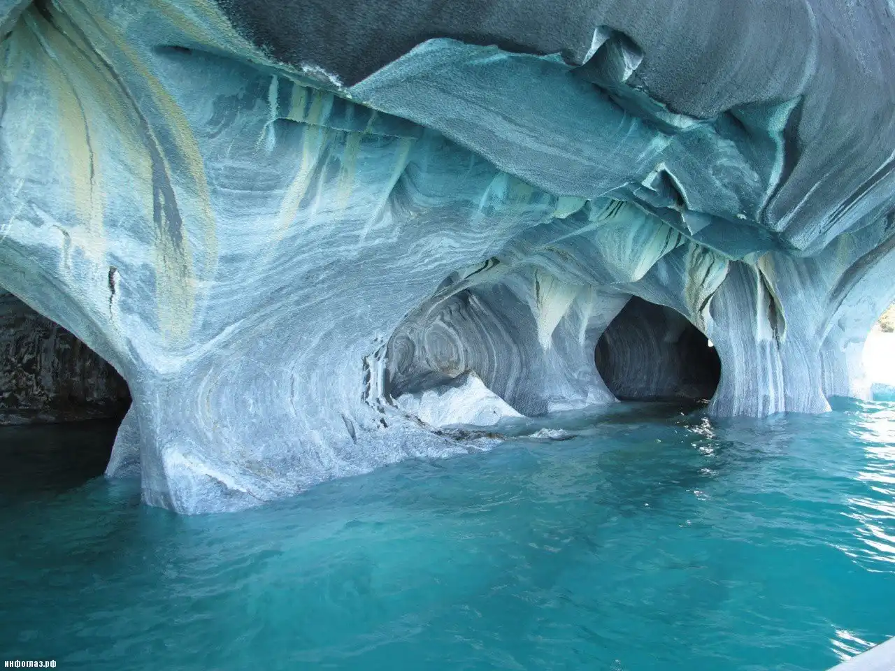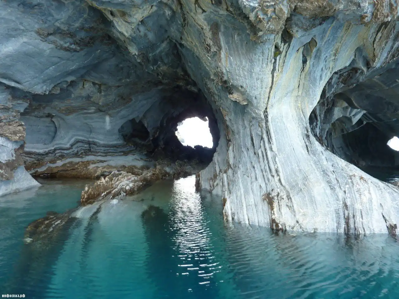 Речь идет о так называемом Мраморном соборе (Las Cavernas de Marmol или Marble Cathedral) или Мраморных пещерах Чиле-Чико. На самом деле стены удивительного лабиринта, промытого в скалах бросившего вызов водам Lago General Carrera полуострова, вовсе не из мрамора – скалы полуострова известковые. Однако в гамме цветов сводов глубоких и сквозных гротов преобладает белый и голубоватый оттенки, весьма эффектно смотрящийся на фоне бирюзовой воды.
