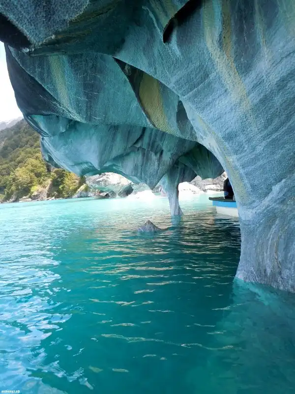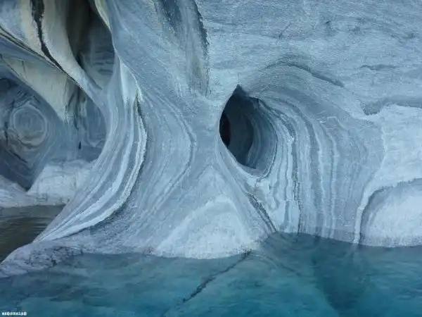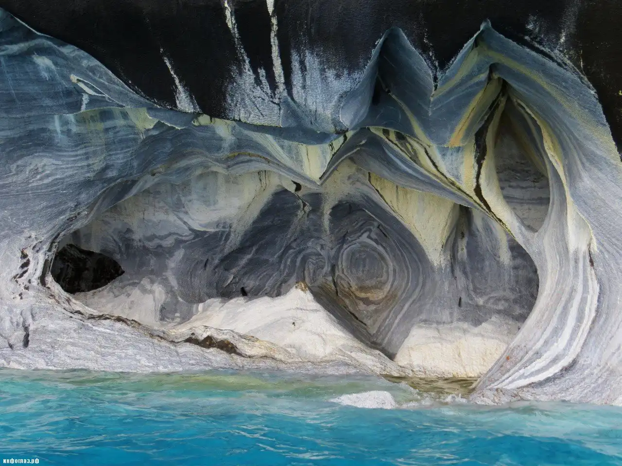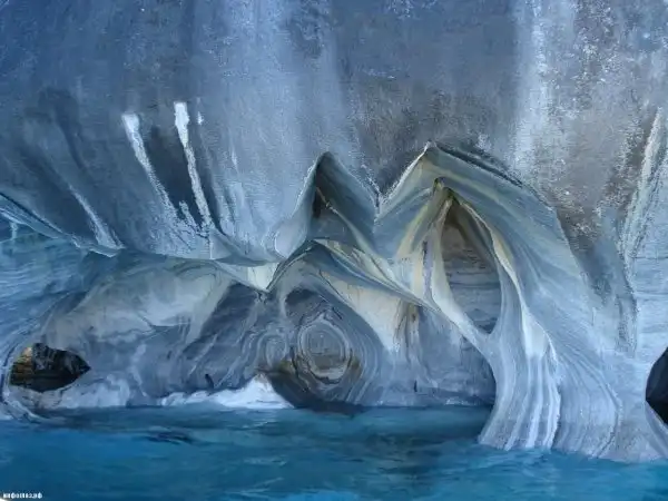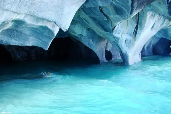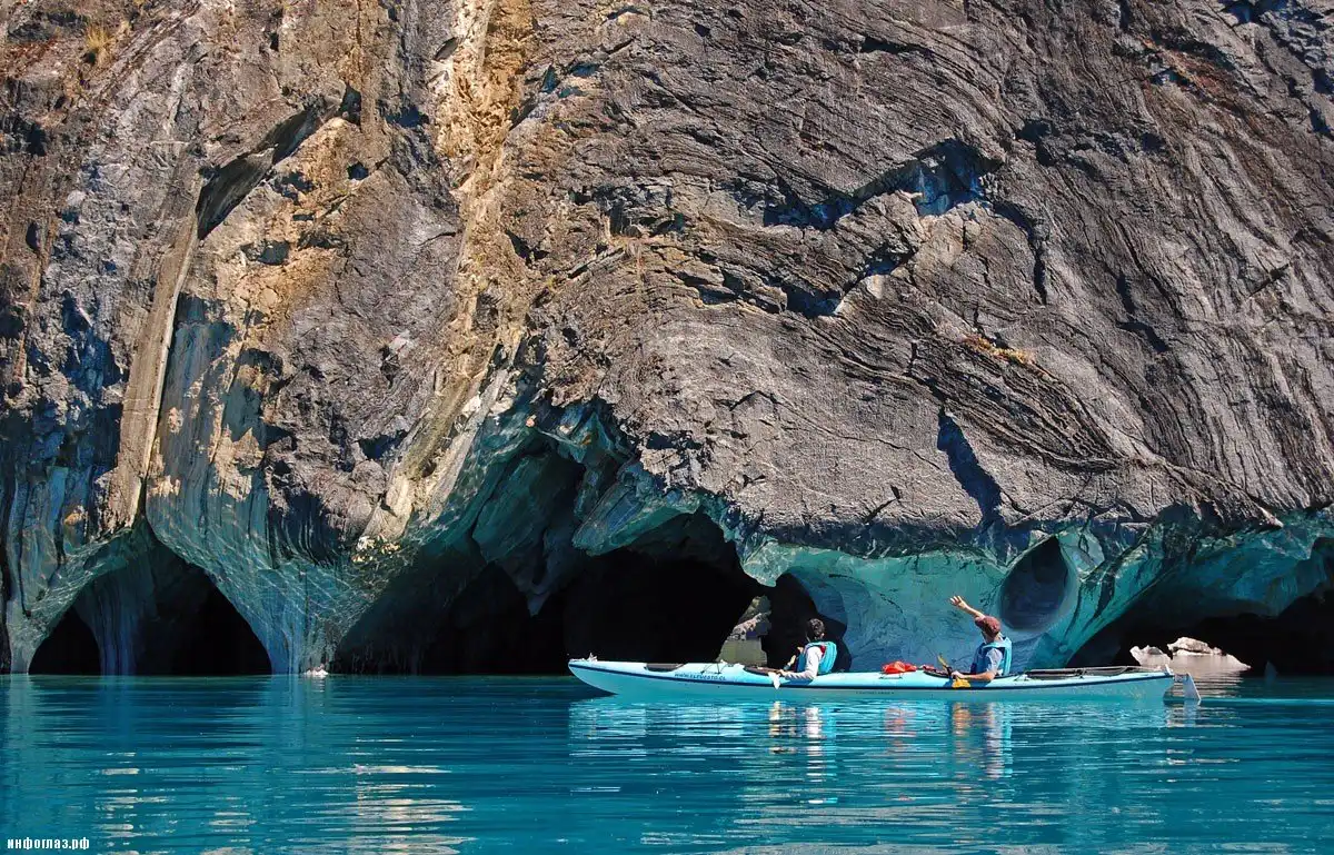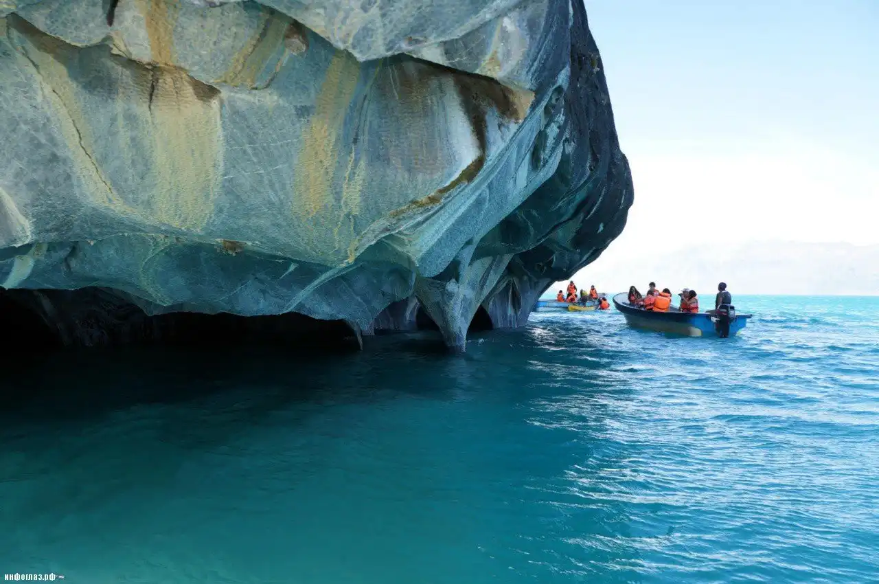 Речь идет о так называемом Мраморном соборе (Las Cavernas de Marmol или Marble Cathedral) или Мраморных пещерах Чиле-Чико. На самом деле стены удивительного лабиринта, промытого в скалах бросившего вызов водам Lago General Carrera полуострова, вовсе не из мрамора – скалы полуострова известковые. Однако в гамме цветов сводов глубоких и сквозных гротов преобладает белый и голубоватый оттенки, весьма эффектно смотрящийся на фоне бирюзовой воды.