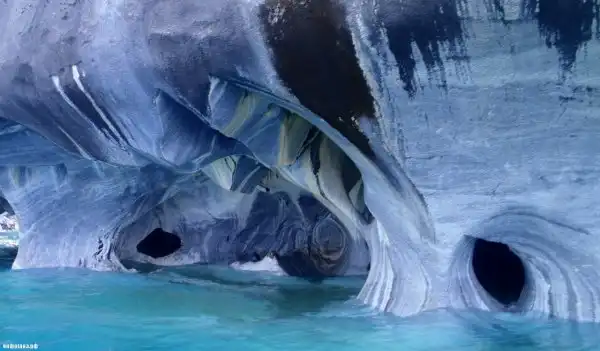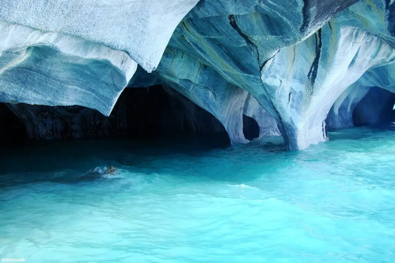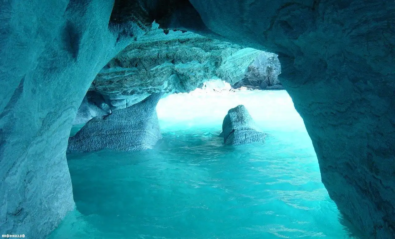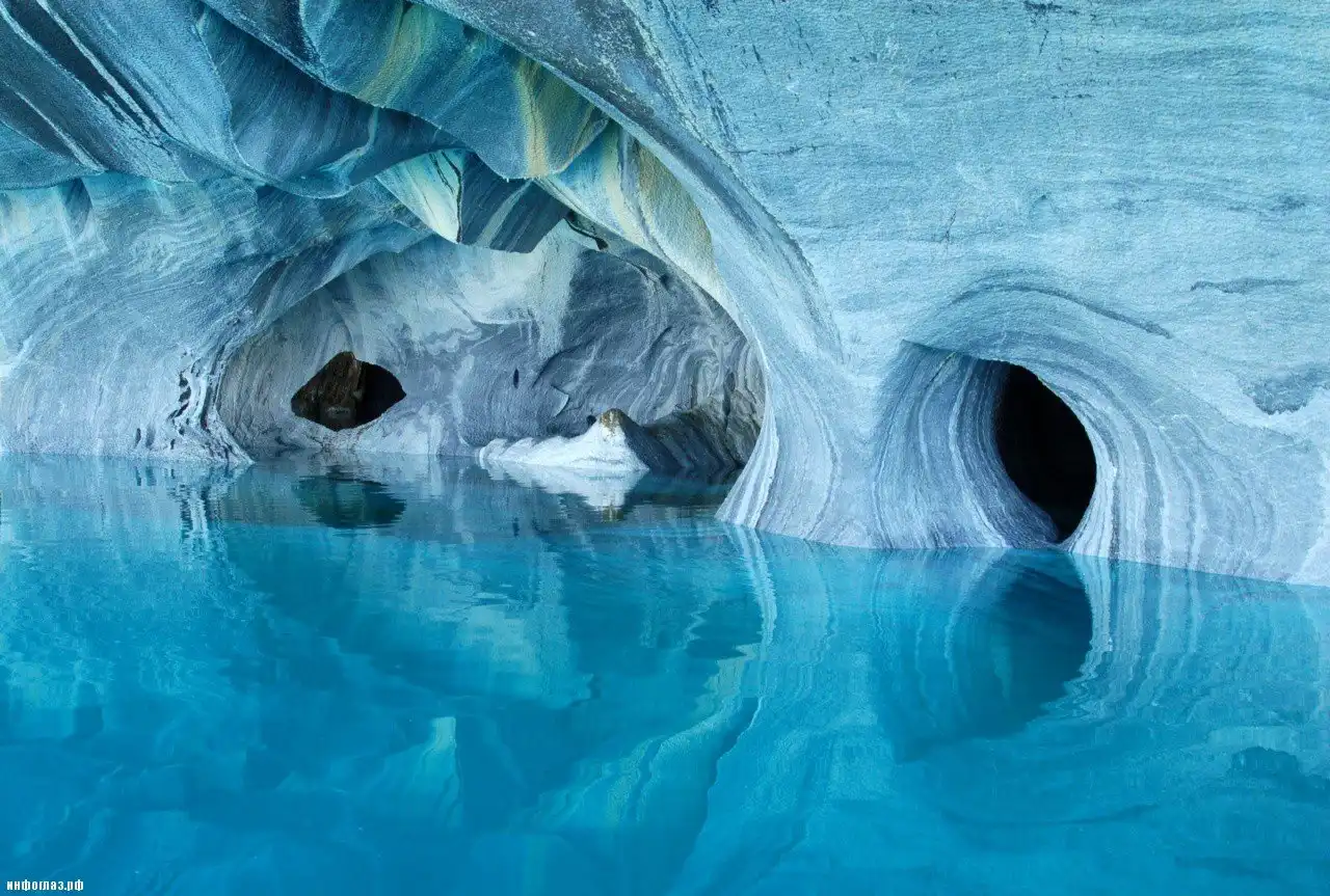 Мраморные пещеры Чиле-Чико состоят из нескольких голубых гротов, которые частично находятся под водой озера Каррера. Ярко-голубые цвета пещер Патагонии и вода бирюзового цвета просто будоражат фантазию любого человека, увидевшего это творение природы впервые.