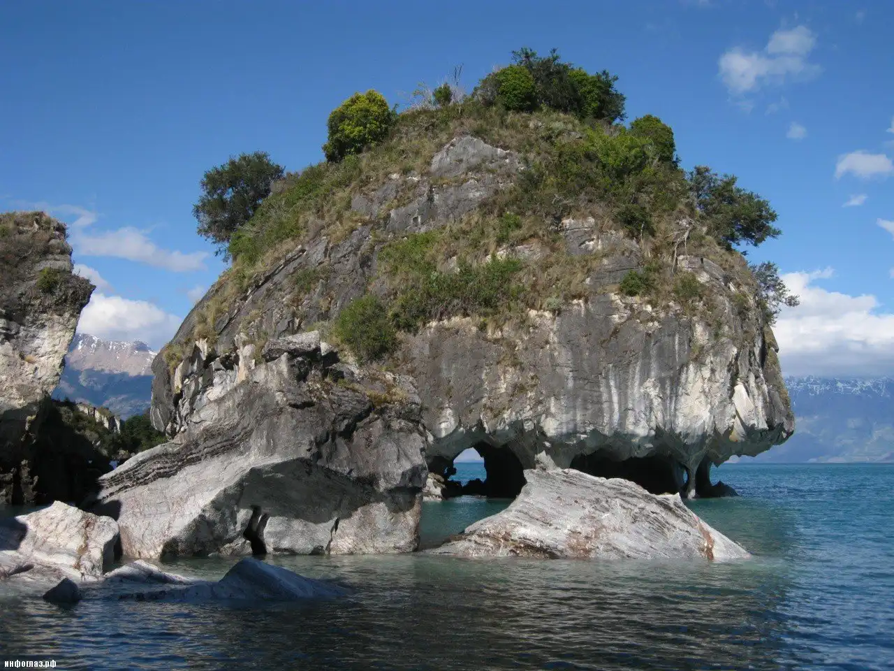 Непосредственно озеро располагается на границе двух стран Аргентины и Чили, а вот мраморные пещеры – именно на территории Чили. Чиле-Чико имеют три основных грота: Часовня (Ла Капилла), Собор (Эль Катедраль) и Пещера (Ла Куэва).