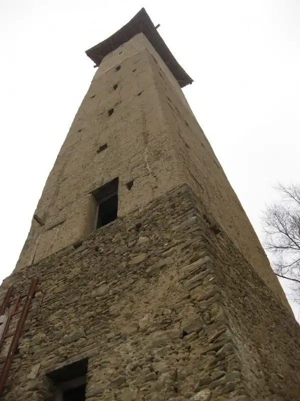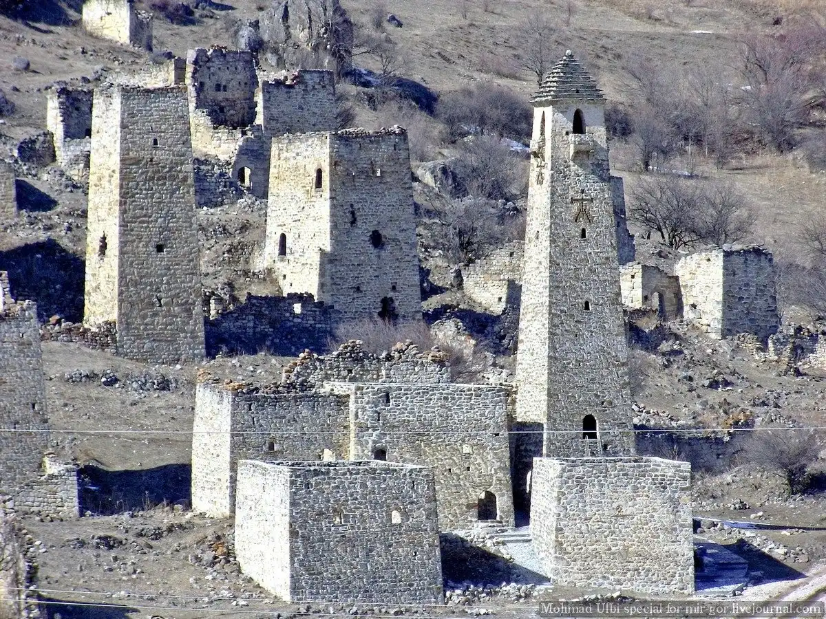 Культ камня ― именно так можно вкратце охарактеризовать самую суть этого строения. Это удивительно, но две массивные боевые башни были возведены безо всякого фундамента. Фактически они стоят на сланцевых скалах. Вполне распространенная строительная технология того времени: на предполагаемое место строительства, на землю, лили молоко. Весь грунт, сквозь который оно просачивалось, убирали и лили дальше ― до тех пор, пока молоко переставало впитываться. После этого ставили самые первые камни огромных размеров, больше человеческого роста, которые обеспечивали устойчивость конструкции. «При удивительной стройности, пропорциональности и довольно большой высоте, они устойчивы и прочны», ― писал о военных ингушских башнях художник Щеблыкин, оставивший довольно много исследований об этом месте и зарисовок местных сооружений. Для транспортировки камней использовался специальный ворот для подъема.