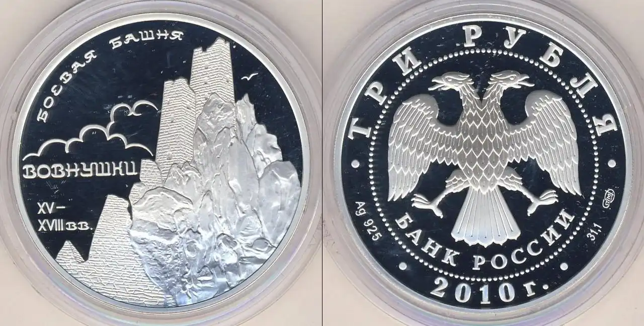 В 2010 году Банк России в серии «Памятники архитектуры» памятных монет России выпустил тиражом в 10000 экземпляров серебряную монету с изображением одной из сторожевых башен комплекса «Вовнушки» номиналом 3 рубля и весом 31,1 грамм.