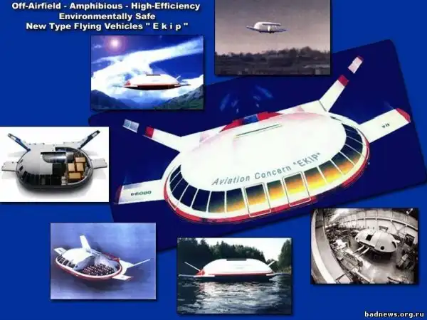 В АОЗТ "Авиационный концерн "ЭКИП" специалистами авиационной и ракетно-космической отраслей промышленности разработаны фундамен-тальные основы принципиально нового типа летательных аппаратов "ЭКИП", способных перевозить крупногабаритные грузы весом до 100 и более тонн на расстояния нескольких тысяч километров со скоростью 650-700 км/час и на высоте до 10 километров. Эти аппараты способны перемещаться с использованием воздушной подушки как вблизи поверхности земли, так и воды на скоростях до 160 км/час, а также осуществлять полет в режиме экранолета на скоростях до 650 км/час.