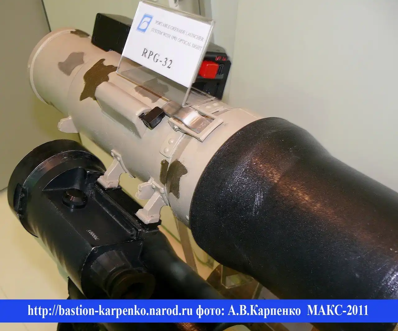 Граната калибра 72-мм предназначена для поражения легкобронированных целей, укрытий и т.п., пробивает броню толщиной 500 мм. Весит 3 кг. А кумулятивная 105-мм граната пробивает гомогенную броню толщиной около 1000 мм и весит 7 кг. Гранаты содержатся в специальных герметичных и удароустойчивых картриджах. Гранатомет может выдержать без потери боевых свойств до 200 выстрелов. РПГ-32 очень прост в обращении, любой новичок осваивает его очень легко и уже со второго выстрела гарантированно попадает в цель. Достаточно поймать цель в прицел и выстрелить.