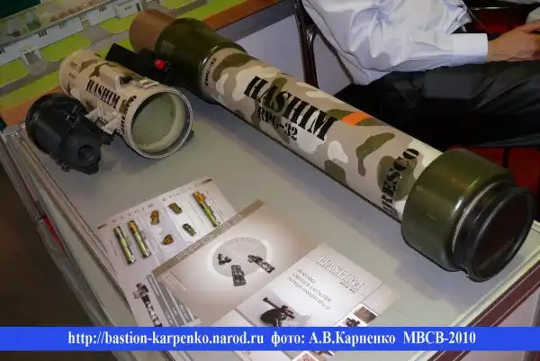 Но за почти полвека с момента появления РПГ-7, бронемашины и прочие потенциальные жертвы научились защищаться от его угрозы. Появилась динамическая защита танков, которая очень успешно боролась против несколько устаревших гранатометов, поэтому потребовалось создать новый флагман в среде РПГ. Им стал «Хашим», который впервые был представлен публике на выставке вооружений в Париже в 2008 году. Кстати, своим экзотическим именем он обязан дедушке пророка Мухаммеда и иорданскому королю Абдалле II. Иордания, как заказчица и спонсор экспортного варианта РПГ-32, построила у себя завод, который будет делать около 60 000 «Хашимов» в год.