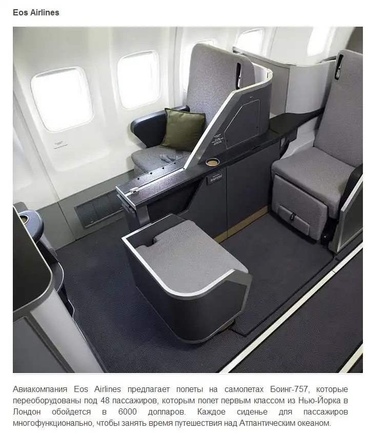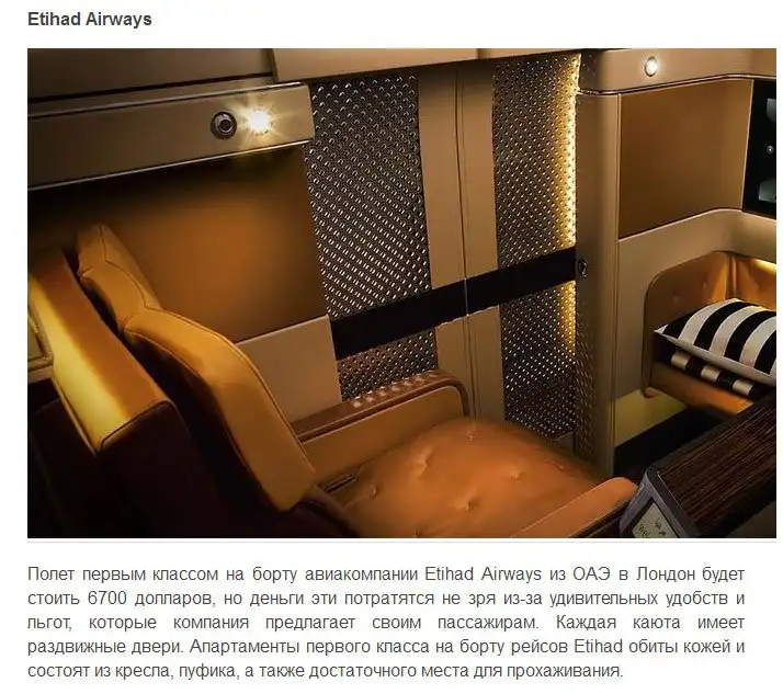 Если вы считаете первый класс верхом современных авиаперелетов, то вы заблуждаетесь. Для самых состоятельных клиентов, привыкших путешествовать с максимальным комфортом, но еще не накопивших денег на собственный самолет, авиакомпании предлагают экстрапервый класс.