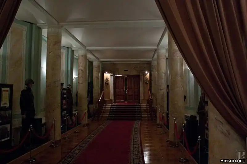 И зал. При проектировании помещения учитывались всевозможные мелочи, вплоть до того, что голосу у Сталина был достаточно тихим, поэтому над центральной частью потолок не прямой, а немного куполообразной формы. Не новинка в архитектуре, но пример продуманности объекта.