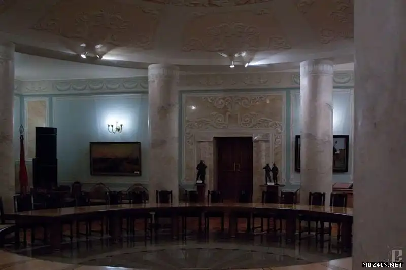 Но вернемся в Измайлово. Зал заседаний и сегодня удивляет своим качеством. Это просторное помещение площадью до 80 кв. метров с 5-метровым потолком и куполом над столом. Купол поддерживают четыре метрового диаметра колонны. Кажется, что они сделаны из итальянского мрамора, но на деле это искусно декорированный железобетон. «Лепнина» на куполе и в виде фриза на выкрашенных под мрамор стенах - тоже весьма искусное украшение: она нарисована, но так, что создается полное впечатление объемности.