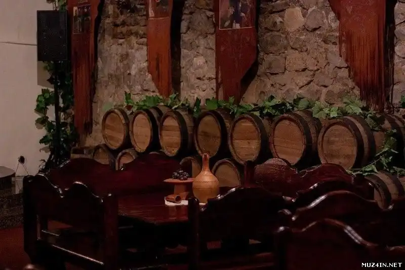 В интерьере столовой-ресторана вдоль стен в стеклянных коробах выставлены муляж ордена Победы (впрочем, сделанный мастерски - основа самого ордена, как известно, изготавливалась из платины, в центре - золотой медальон с изображением Кремля; красные лучи звезд выполнены из рубинов; по периферии - 121 бриллиант общим весом 16 карат), френч Сталина, по которому можно судить о небольшом его росте, патефон с набором пластинок с выступлениями вождя, некоторые другие экспонаты.