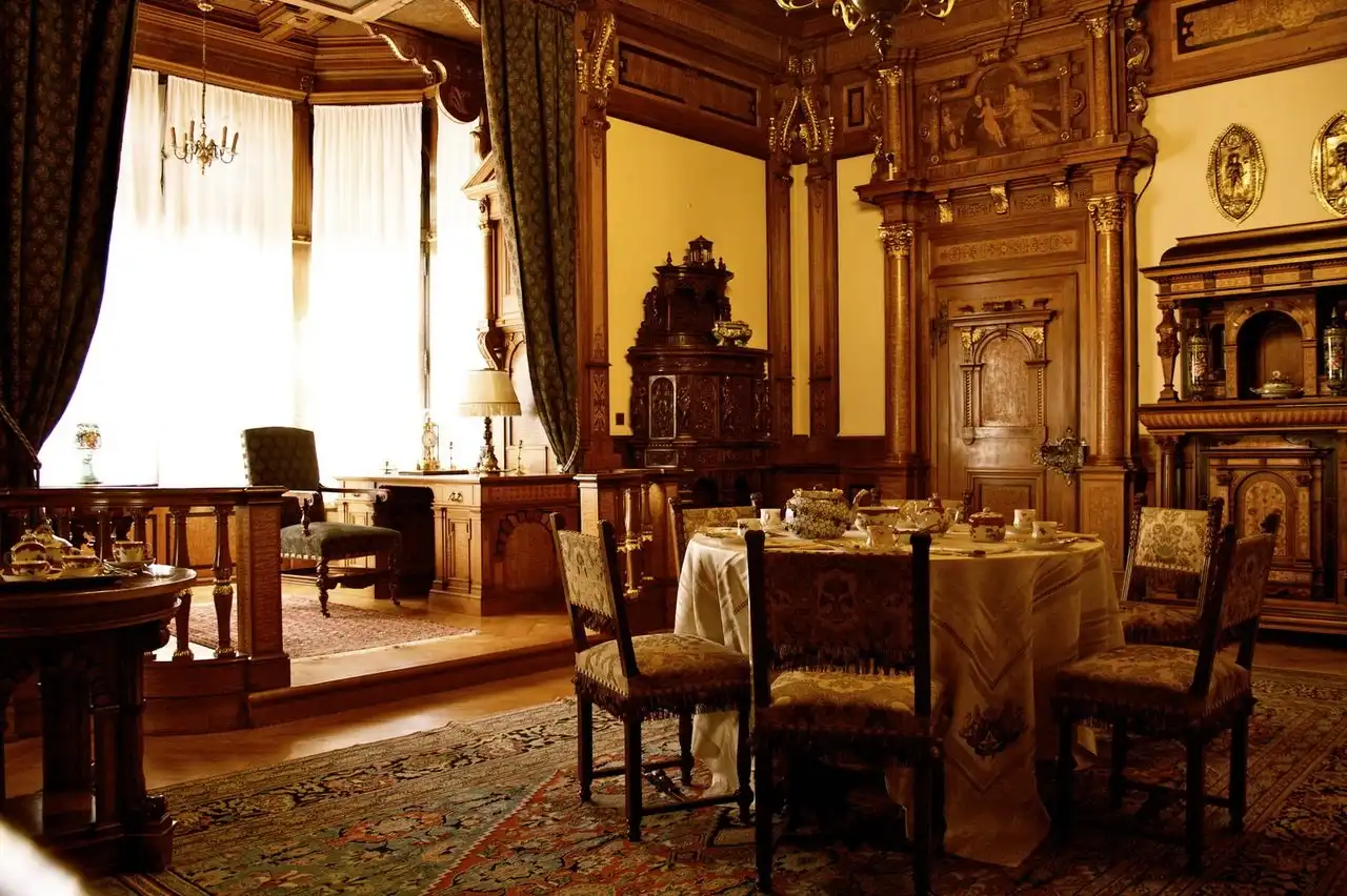 Есть здесь и гигантские зеркала венецианского стекла, и уютные гостиные в мавританском и турецком стилях, и выписанный из Америки музыкальный шкаф-оркестрион, подлинное произведение искусства, способное украсить любую коллекцию антиквариата. И конечно, как и полагается в настоящем средневековом замке, имеются потайные двери и ходы. Но это уже скорее дань традиции, нежели необходимость в просвещенные времена, когда создавалось это маленькое чудо.