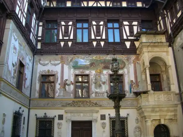 Замок Пелеш был построен в стиле неоренессанса, но в фахверковых фасадах внутреннего двора с их роскошно расписанными стенами чувствуется саксонское влияние, а в интерьерах, украшенных богатой резьбой по дереву и изысканными тканями, заметно влияние барокко. Внешнее его убранство похоже на замок из сладкой сказки. Он чем-то схож со сказочным замком из мороженого и печенья. Но в тоже время, он отличается от всех вычурных и напыщенных замков Западной Европы. Его стилистику можно обозначить, как легкое швейцарское шале. Он невероятно шикарен, здесь просто ослепительная архитектура, но в чем-то, все же, присутствует сдержанность, непохожесть на все остальные замки. Вероятнее всего, виной тому, смешение стилей.
