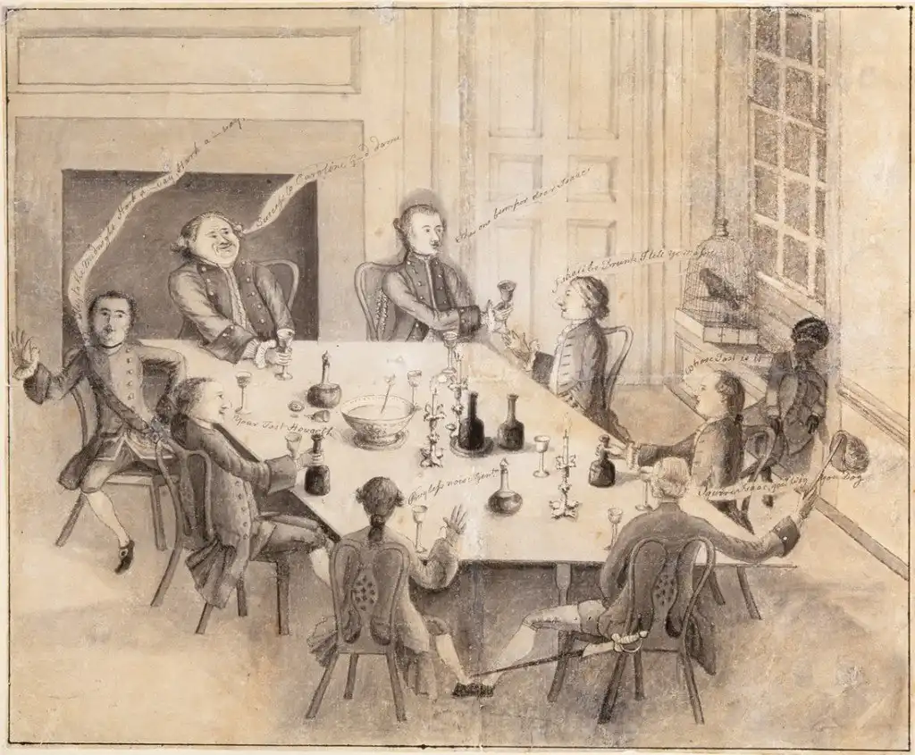 Ром стал популярным в колониальной Америке по той же причине, что и пиво в Англии. Рабочие в Англии потребляли много пива считая, что именно оно дает им силы и при этом оно было очень дешево. Бенджамин Франклин отправился в Лондон в 1724 году и вскоре устроился на работу в одну из типографий. Начав на прессе он вскоре стал наборщиком, работая в большом коллективе из 50-ти человек. Франклин пил только воду и быстро получил прозвище "водяной американец". По его воспоминаниям остальные рабочие пили каждый день по пинте пива перед завтраком, пинту за завтраком, закусывая его хлебом и сыром, пинту между завтраком и обедом, пинту за обедом, пинту во второй половине дня около 6:00, и еще одну, когда заканчивали свою работу. Всего не менее шести пинт крепкого пива в день (это около 3-х литров).