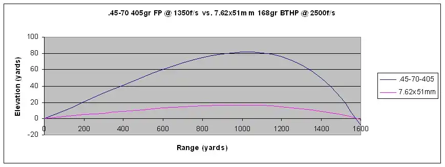 Сравнительные траектории полета пуль .50-90 и 7.62 НАТО