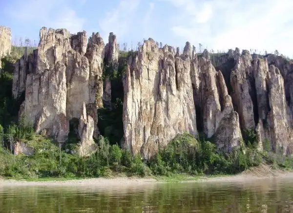 Ленские и Синские столбы – это обрывистые, совершенно отвесные скалы, сложенные кембрийскими известняками. Подобные известняки были впервые обнаружены и описаны в Англии, в графстве Уэльс (старинное название – Кембрия). Время, осадки, речная вода и ветер придали каменной тверди Земли причудливые формы. Протяженность столбов вместе с мощными каменными скалами-останцами вдоль берега р. Лены около 80 км. Ленские столбы давно привлекают внимание путешественников и исследователей. Расположены они по правому берегу Лены напротив дер. Батамай, в 200 км выше г. Якутска. В зависимости от степени выветрелости, породы распадаются на столбы, шпили, скалы, башни, другие причудливые формы, а также образуют протяженные осыпи.