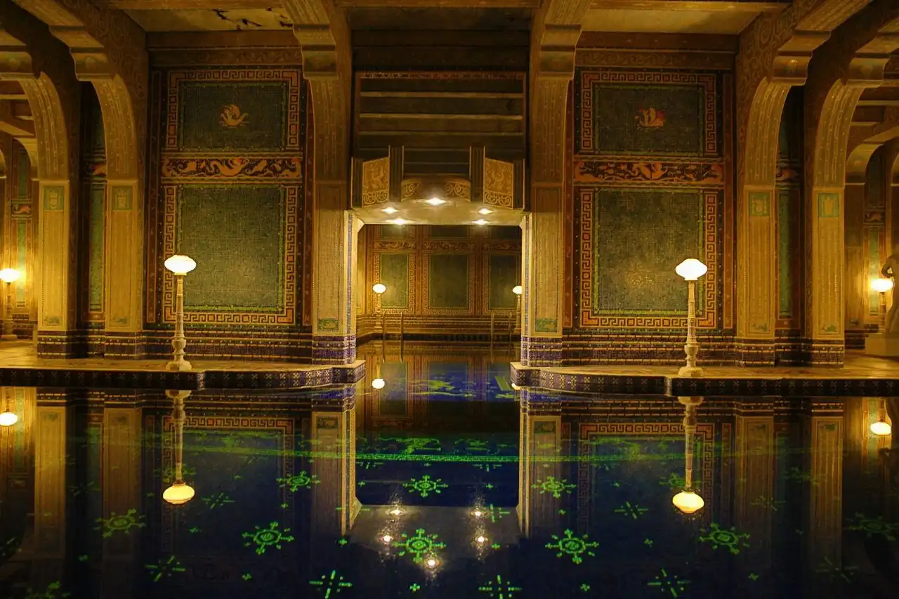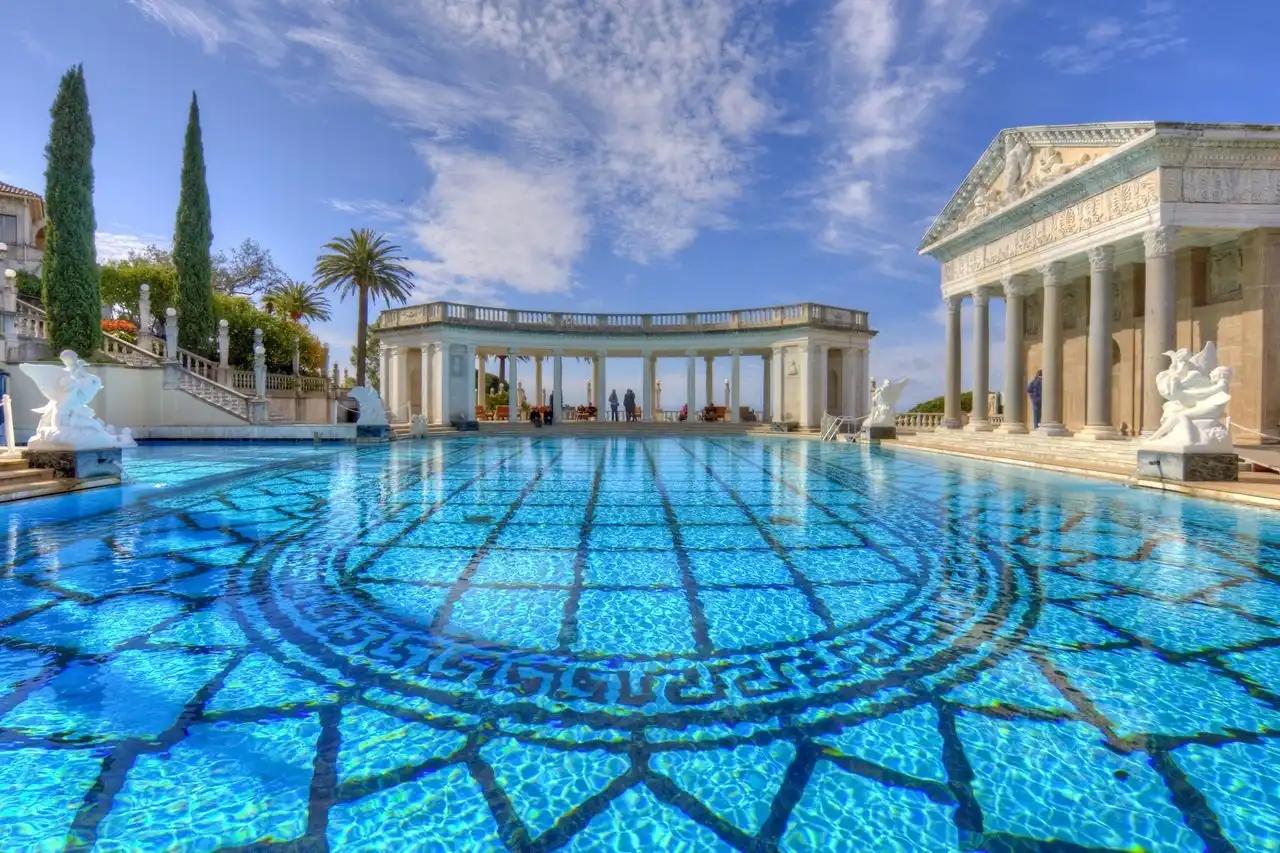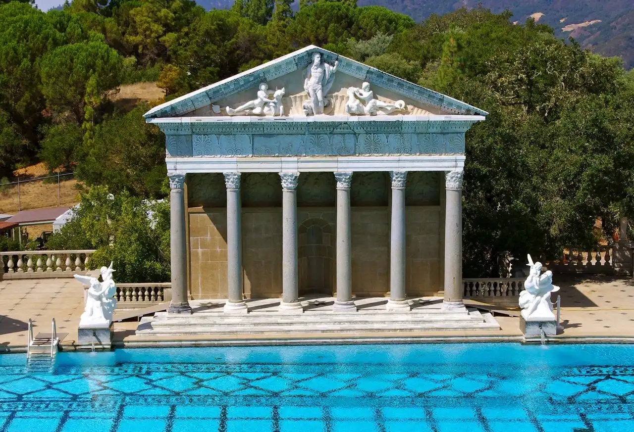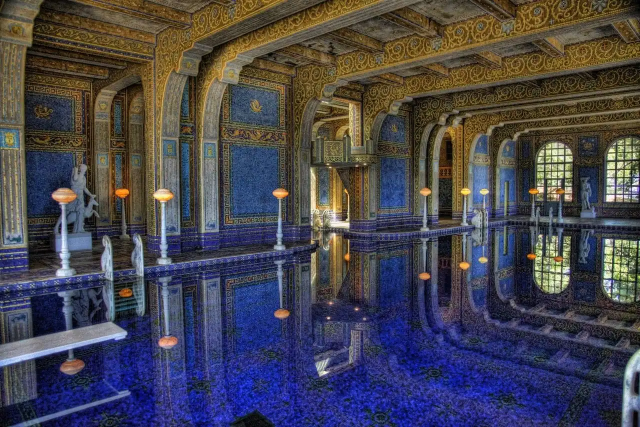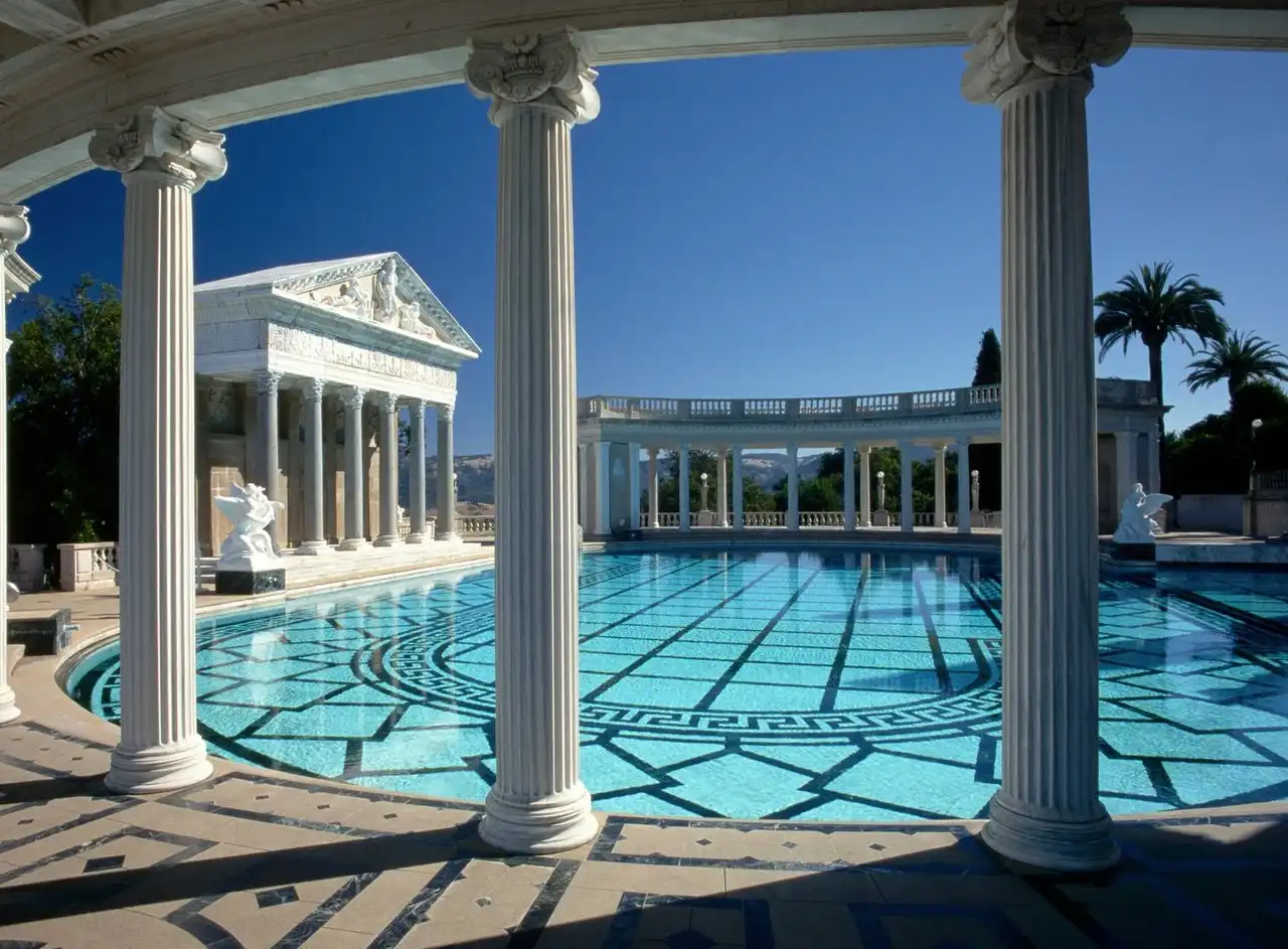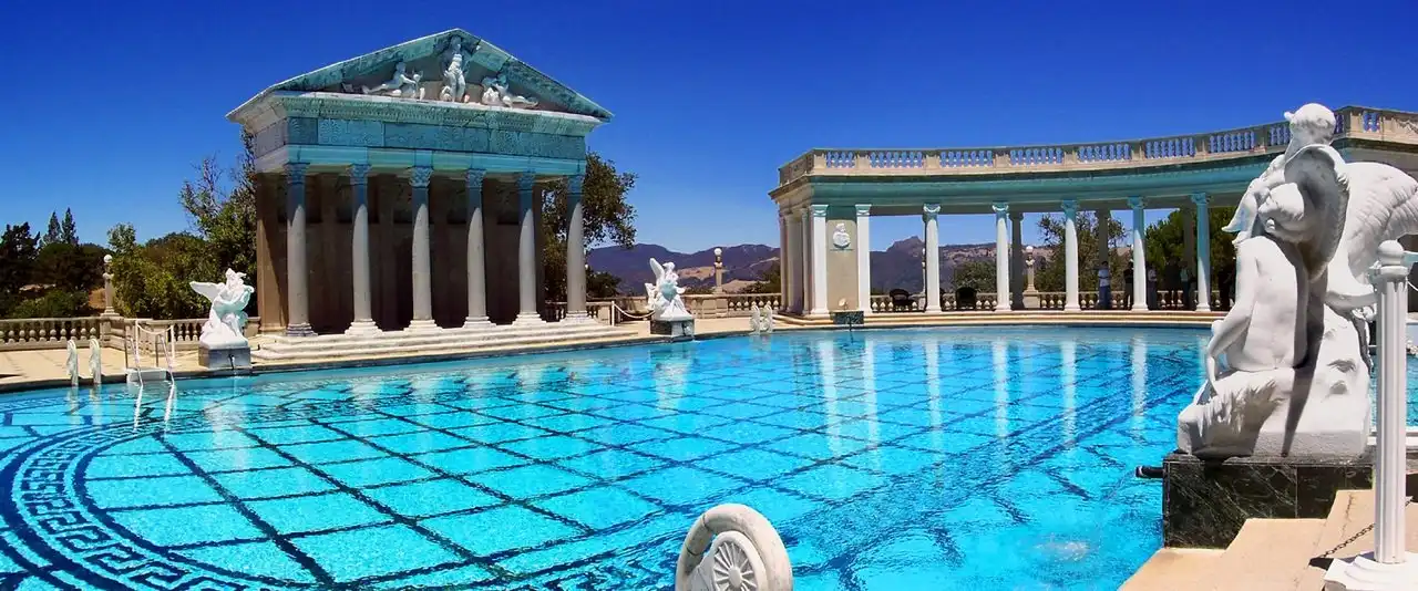 Но гости должны были не только комфортно ночевать — для их услады Херст построил безумно красивый бассейн, который назвал «Нептун». Бассейн, который своей роскошностью, своим убранством напомнил мне величие Римской империи. Стоя у кромки бассейна, было трудно себе представить, что всего-лишь несколько десятилетий назад эти окрестности оглашали смех и веселье самых знаменитых людей планеты, которые плескались в водах этого поражающего воображение своей красотой храма воды!