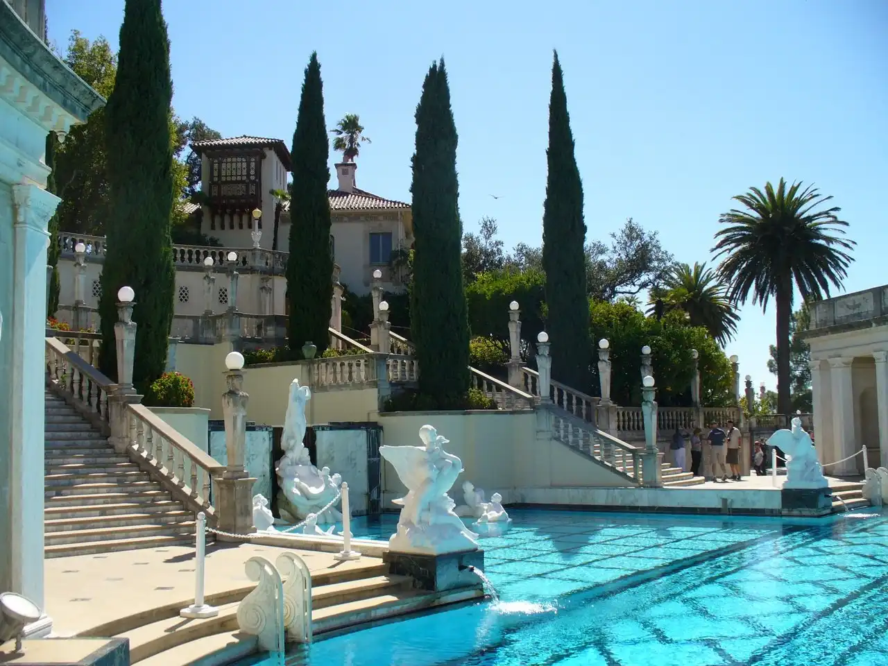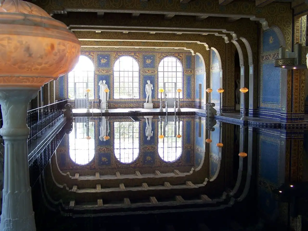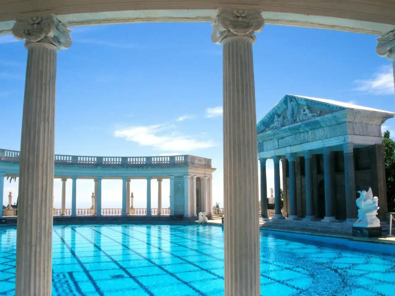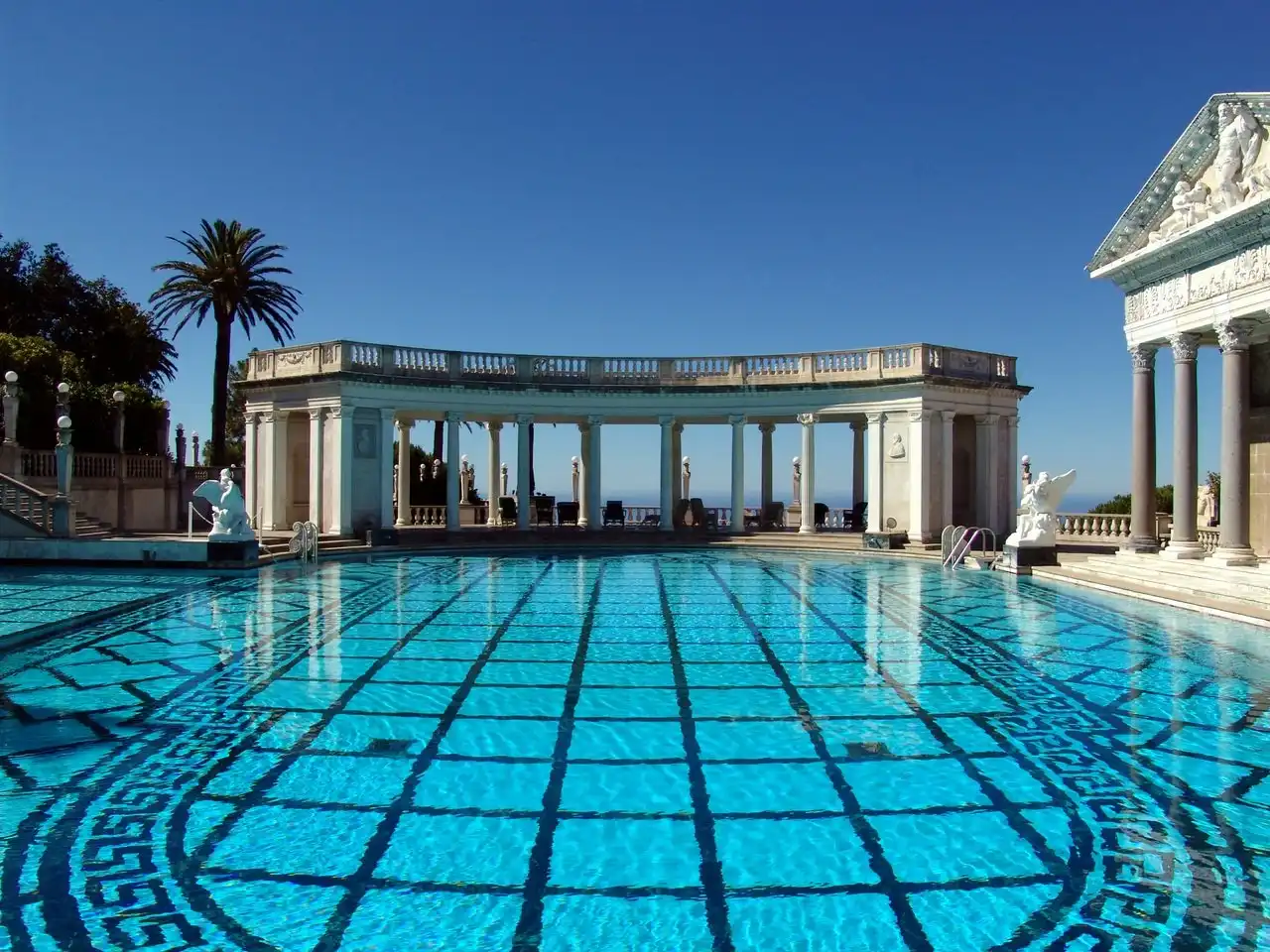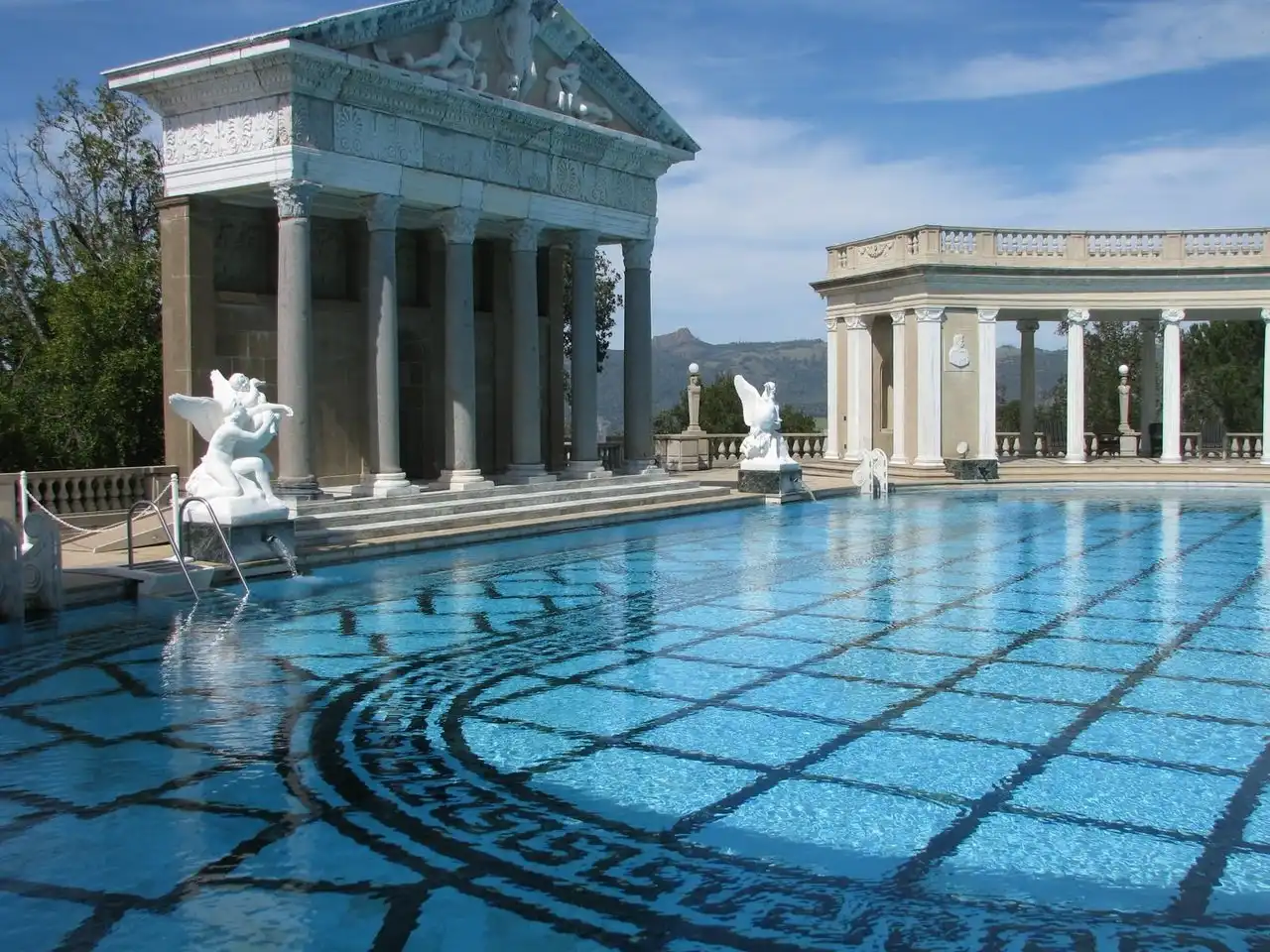 Но гости должны были не только комфортно ночевать — для их услады Херст построил безумно красивый бассейн, который назвал «Нептун». Бассейн, который своей роскошностью, своим убранством напомнил мне величие Римской империи. Стоя у кромки бассейна, было трудно себе представить, что всего-лишь несколько десятилетий назад эти окрестности оглашали смех и веселье самых знаменитых людей планеты, которые плескались в водах этого поражающего воображение своей красотой храма воды!