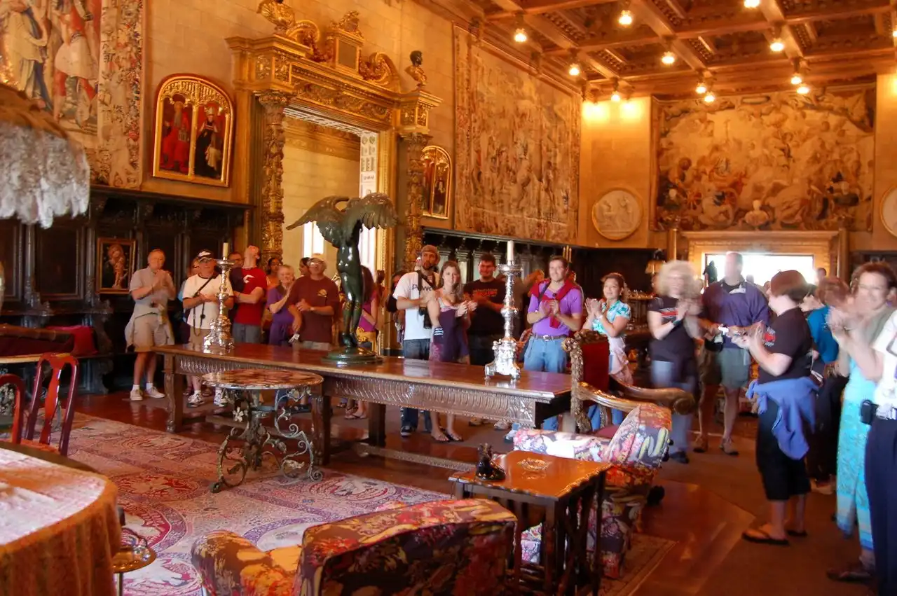 Вильям Рэндольф Херст был человеком со многими интересами и многими талантами. Он создал одну из самых больших империй в области СМИ и издательского дела в США. Во время зенита его карьеры он владел 26 газетами, 13 национальными журналами, 8 ралиостанциями и многими другими службами новостей. А также он выпускал кинообзоры новостей и создал почти 100 художественных фильмов. На продолжение всей его жизни он собирал произведения искусства и антикварные изделия со всех концов земного шара, строил и ремоделировал здания, где выставлялись его коллекции. Это выдающееся поместье было построено в то время, когда многие богатые американцы строили загородные резиденции похожие на дворцы.