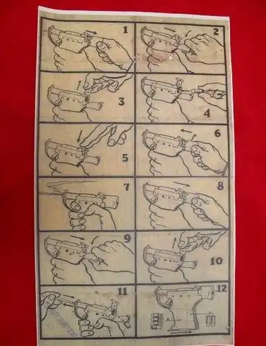 В большинстве источников указывается, что на поверхности пистолета отсутствовали какие-либо маркировочные обозначения. Однако я на одном из аукционов увидел пистолет с маркировкой на левой части поверхности ствола.