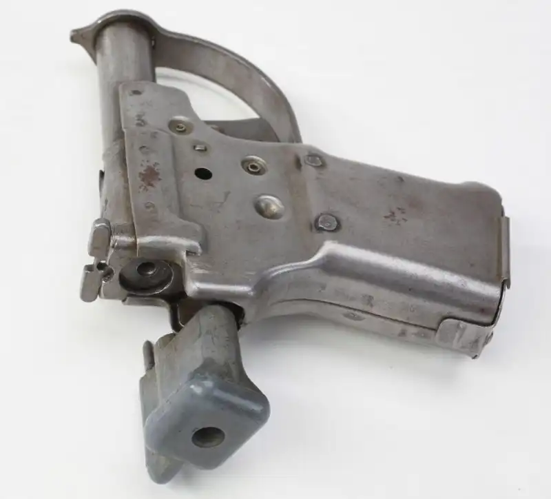 Спусковая скоба охватывает ствол и крепится вторым концом в рукоятке. Верхняя часть спусковой скобы выполняет роль мушки. Рукоять пистолета состоит из двух симметричных штампованных половинок.