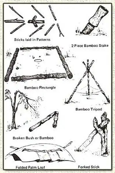 Чтобы в ловушки не попадались свои, вьетнамцы разработали целую сигнальную систему из расположенных определенным образом палочек, листьев и сломанных веток. Опытный человек по этим отметкам мог определить не только, что рядом установлена ловушка, но и тип этой ловушки.