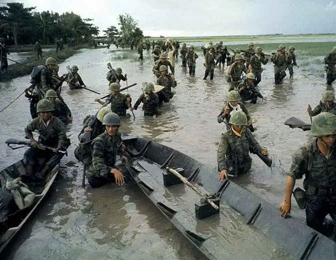 По самим же вьетнамским джунглям, в глубине территории, американские войска, не имея другой возможности, были вынуждены передвигаться и воевать пешком. И это в условиях средней летней температуры более 30 градусов и стопроцентной влажности. Также стоит помнить, что такое сезон дождей во Вьетнаме — когда тропические дожди почти не прекращаясь идут по нескольку месяцев, заливая водой огромные пространства.