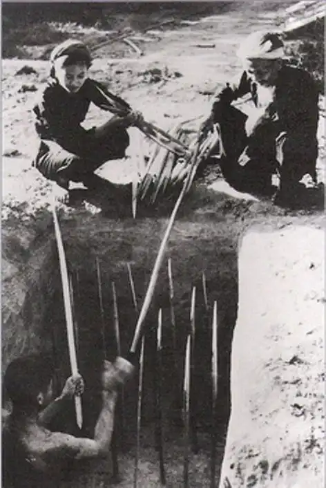 В густых зарослях бревно заменяли на шарообразную конструкцию. Следует отметить, что колья вьетнамцы часто делали не из металла, а из бамбука — очень твердого материала, из которого в Юго-Восточной Азии делают ножи.