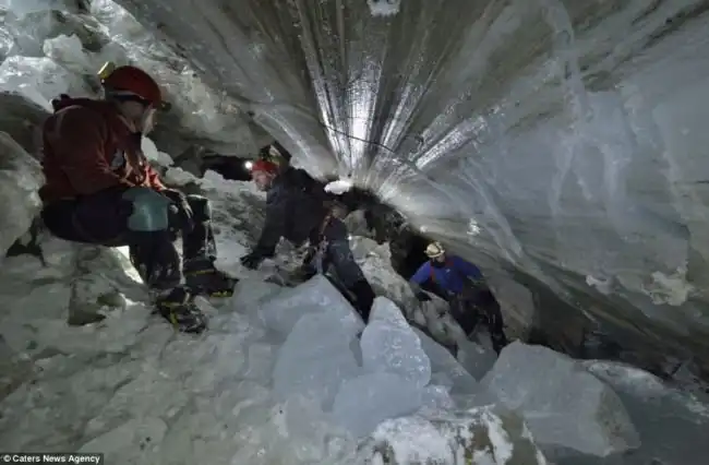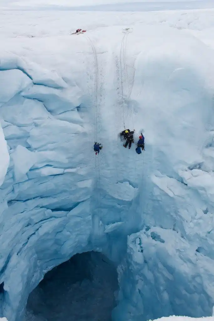 Команда спускалась по вертикальным шахтам Мулен, которые уходили вниз на глубину до 40 метров. Робби Шон добавил: «Каждый день мы проводили во льдах по восемь часов.