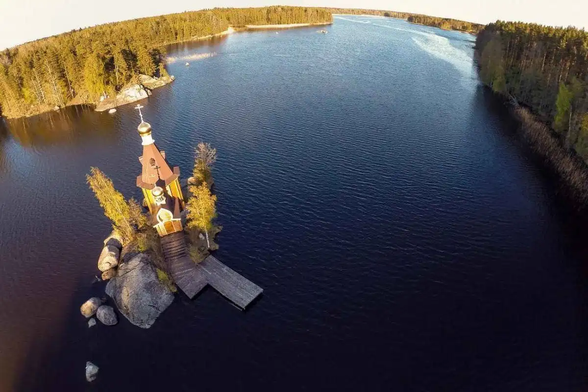 Вдали от шума больших городов, среди водной глади Вуоксы, стоит храм Андрея Первозванного. Храм занесён в книгу рекордов Гиннеса, как единственная в мире церковь, построенная на крошечном острове, фундаментом которой служит монолитная скала, выступающая из воды. Построил его в 2000 году, Ротинов Андрей Николаевич, по образованию архитектор(ныне покойный уже к сожалению). Там не проводится помпезных христианских церемоний, нет массового паломничества прихожан и прочего подобного. Это место скорее для уединения с Природой, для осмысления событий Вашей жизни, раздумий и тихой беседе с Богом в непринуждённой обстановке. Вокруг живописные берега Вуоксы, выступающие из воды скалы, пение птиц… Можно сказать — идиллия или умиротворение.