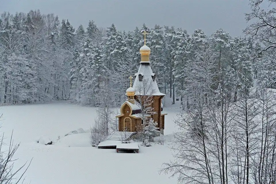 Храм был построен по древним канонам в форме восьмерки в 2000 г обычными люди – профессором университета им. Герцена и поддержавшим его идею дачником Андреем Лямкиным, живущим неподалеку от Вуоксы. Примером для архитектурного решения стала старейшая церковь Вознесения в Коломенском.
