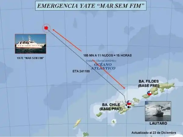 Чилийским флотом на базе Бахиа Филдс (Bahia Fildes), Антарктика, был принят сигнал о помощи с судна «Mar Sem Fim».