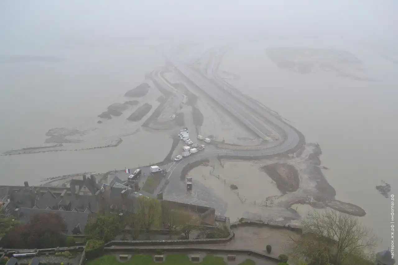 В конце XIX века также была построена дамба, связавшая остров с материком. К сожалению, она спровоцировала ускорение заполнения залива песчаными наносами. В результате за последние 100 лет уровень дна у острова повысился на 3 метра, из-за чего Мон-Сен-Мишель может утратить свое островное положение. Сейчас реализуется проект строительства на месте части дамбы моста, протяженность которого составит 1 км. По расчетам гидрологов, такие меры будут способствовать освобождению залива от морских наносов.