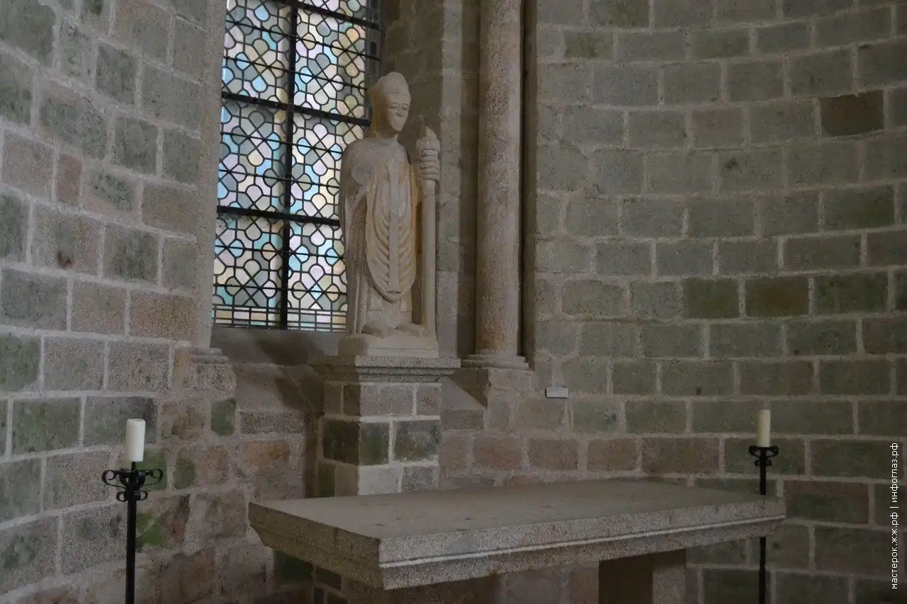 На скале была построена часовня по типу святилища в пещере Монте-Гаргано на юге Италии, где в 492 году было явление Архангела Михаила. Часовня, воздвигнутая Обером, лишь отдаленно напоминала итальянский грот. Из Монте-Гаргано сюда были доставлены две реликвии: фрагмент багряного покрова, брошенного Архангелом и часть мраморной плиты с отпечатком его стопы.