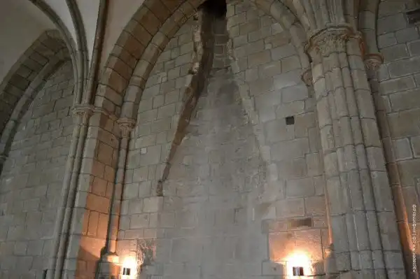 Была возведена в XV веке, чтобы поддерживать готические хоры храма, реконструированные после пожара в 1421 г. (были уничтожены романские хоры). В центре крипты расположены 10 колонн, 5 м. в обхвате, которые в свою очередь поддержвивают 10 колонн хора.