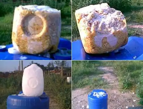 Современная реконструкция стрельбы лорда Маунтбаттена. После выстрела от блока пикрита откалывается кусок, от такого же блока льда – не остаётся ничего