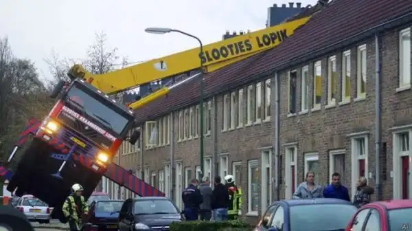 В городе Ийссельстейн, Голландия, один парень захотел сделать оригинальное предложение руки и сердца своей возлюбленной. Молодой человек арендовал кран, в люльке которого он хотел появиться перед окном своей девушки и спеть ей серенаду. Стрела крана упала на крышу соседнего дома и серьезно повредила его.